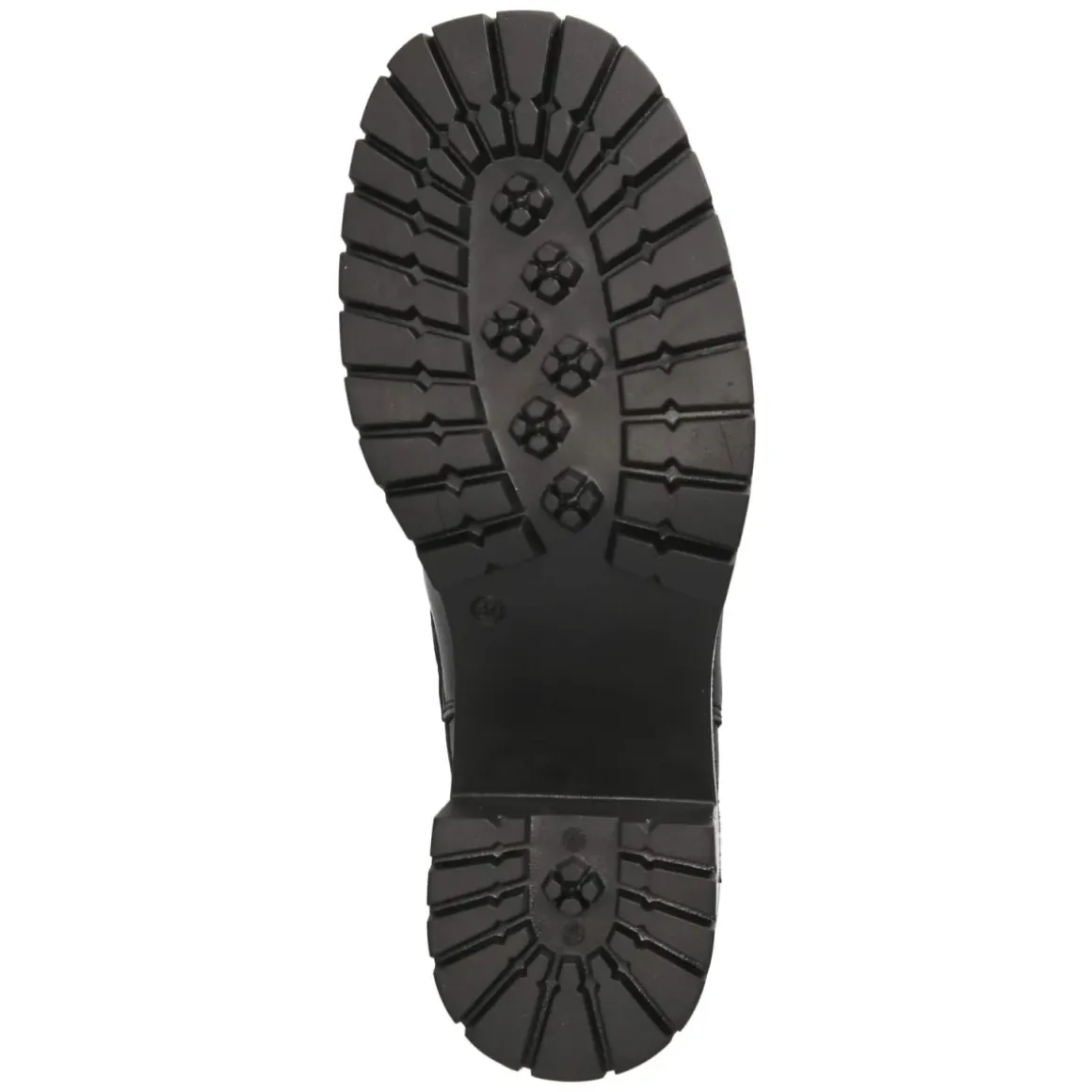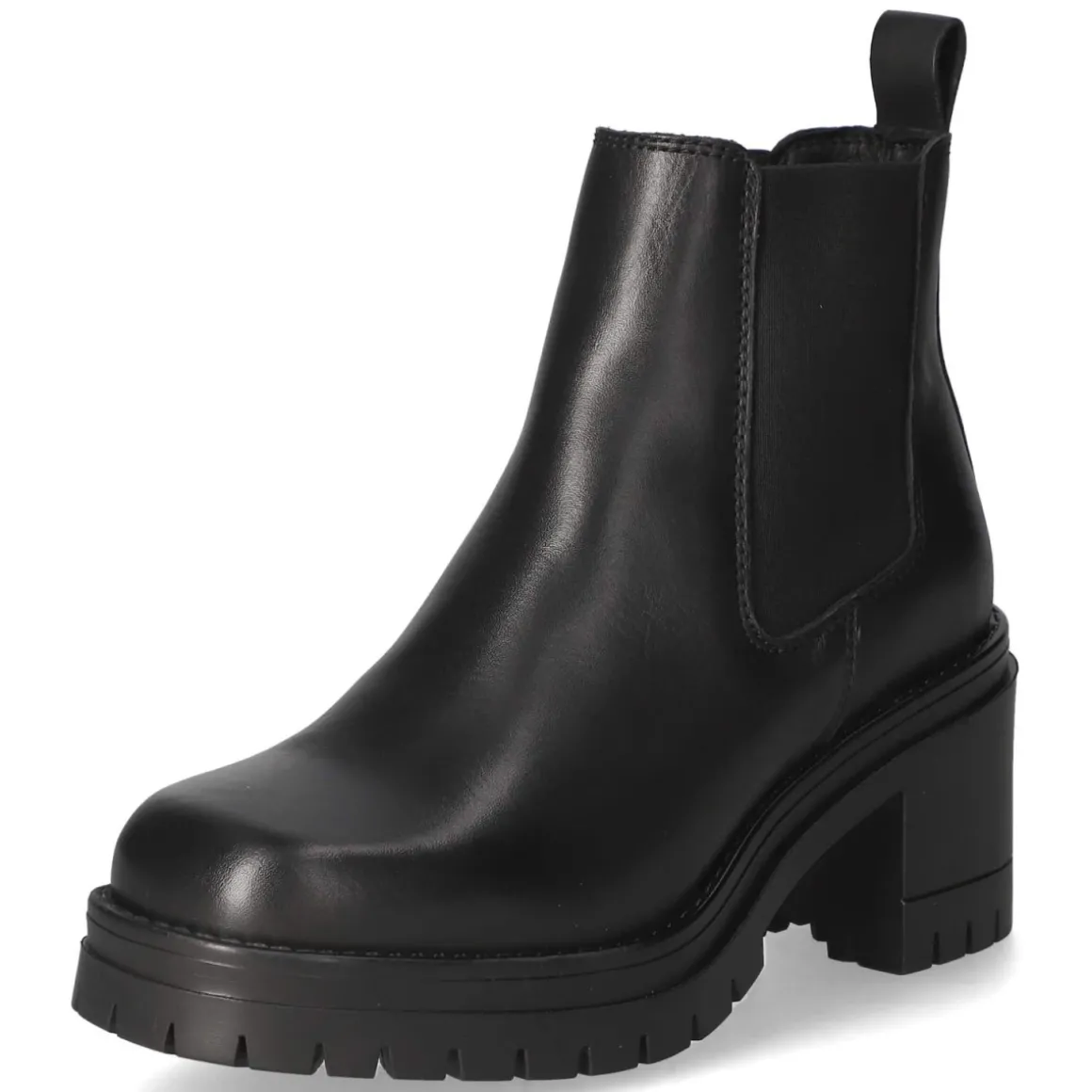 Der Ankle Boot von Fräulein Frida vereint zeitlose Eleganz mit hohem Tragekomfort. Das schwarze Glattleder zeichnet sich durch eine angenehme Atmungsaktivität aus und schmiegt sich dank weicher Verarbeitung an den Fuß. Charakteristische Chelsea-Elemente mit zwei Elastikeinsätzen und Anziehlasche ermöglichen ein müheloses Hineinschlüpfen, während der 5 cm hohe Blockabsatz sicheren Stand und eine feminine Linie betont. Die runde Spitze wahrt klassischen Chic, das gepolsterte Fußbett und die synthetische Decksohle sorgen für entspannte Schritte im Alltag. Eine rutschfeste Profilsohle gibt Halt auf vielfältigen Untergründen. Das Modell fällt größengetreu aus und passt zu Beruf und Freizeit gleichermaßen. Modetipp: Besonders stimmig zu Cropped-Jeans, Strickpullover und strukturiertem Blazermantel oder zu einem Midikleid mit blickdichten Strümpfen.