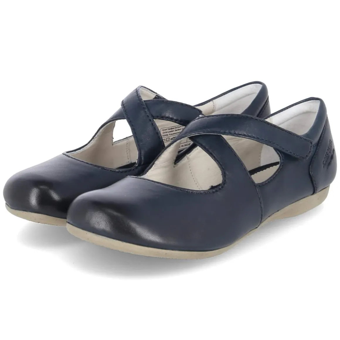 Der Ballerina FIONA 72 von Josef Seibel verbindet feminine Leichtigkeit mit durchdachtem Tragekomfort. Weiches Glattleder schmiegt sich an den Fuß, die runde Schuhspitze bietet angenehm viel Zehenfreiheit. Über dem Spann kreuzen sich Riemen mit Elastikeinsatz und sorgen zusammen mit dem bequemen Klettverschluss für sicheren Halt und eine individuell regulierbare Passform. Die gepolsterte, herausnehmbare Lederdecksohle ist hautfreundlich und lässt sich bei Bedarf durch eigene Einlagen ersetzen. Eine flexible Laufsohle mit rutschhemmenden Eigenschaften begleitet zuverlässig durch den Tag, der verstärkte Fersenbereich gibt zusätzliche Stabilität. Der Ballerina fällt normal aus und zeigt sich in einem vielseitigen Blau mit feiner Ziernaht an der Ferse. Modetipp: Zu verkürzten Chinos und einem gestreiften Shirt entsteht ein maritimer Look; mit einem fließenden Midirock und Feinstrick-Cardigan wirkt das Modell elegant und alltagstauglich zugleich.