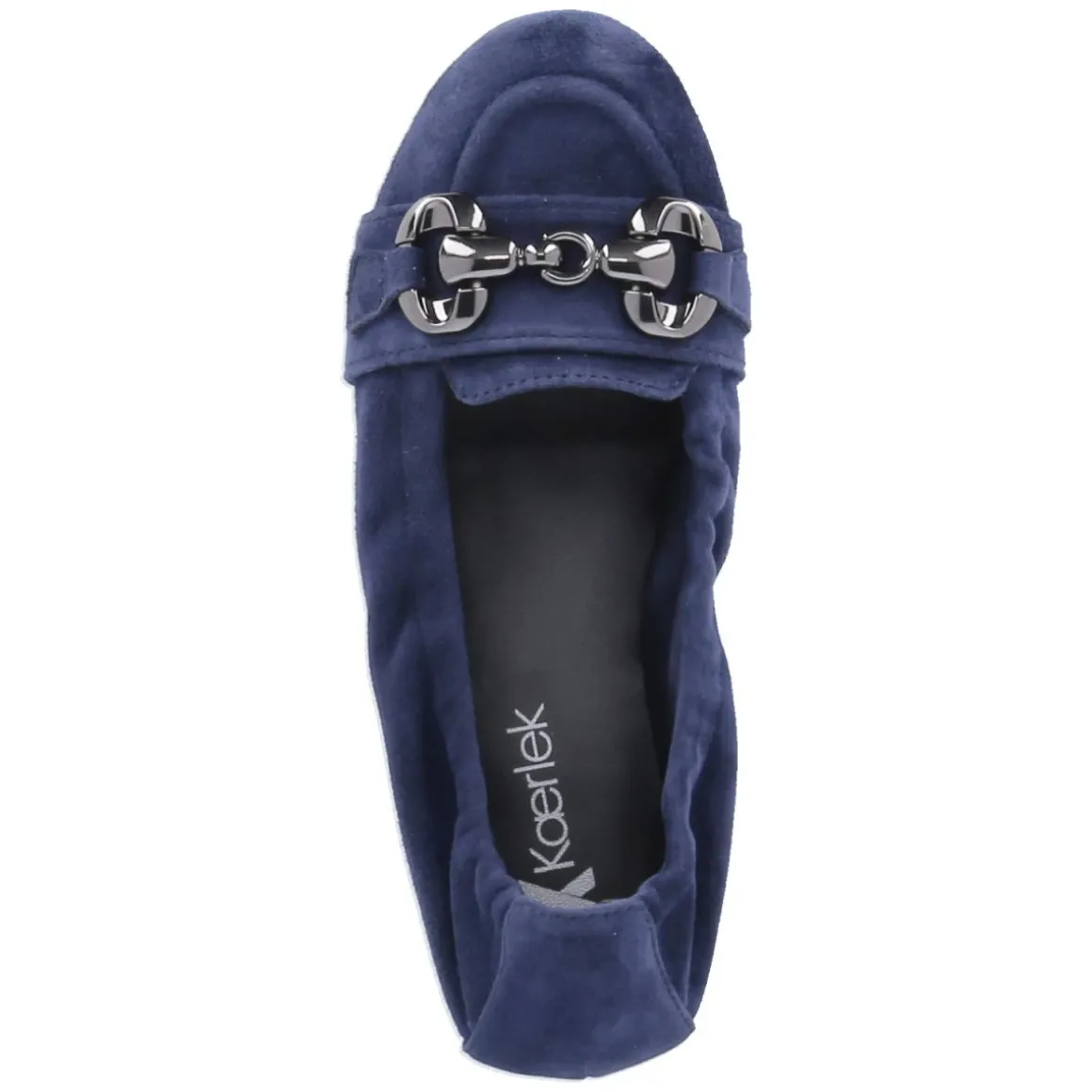 Eleganter Alltagsbegleiter mit Komfortfaktor: Der Ballerina von Kaerlek zeigt sich in edlem Blau und kombiniert zeitlose Linien mit durchdachten Details. Das Obermaterial aus langlebigem Rauleder schmiegt sich weich an, während die verstärkte Ferse und die runde Spitze für formstabilen Halt und eine feminine Silhouette sorgen. Ein elastischer Einstieg erleichtert das Hineinschlüpfen, die gepolsterte Lederdecksohle verwöhnt mit sanfter Dämpfung. Der 2 cm hohe Blockabsatz entlastet dezent und unterstützt einen sicheren Gang, verstärkt durch die sehr flexible, rutschhemmende Laufsohle. Markantes Highlight ist der über dem Spann verlaufende Zierriemen samt kleiner Zunge und Metallelement in glänzender Titanoptik. Ohne Verschluss gehalten, fällt das Modell normal aus und punktet im Tagesverlauf mit hoher Bequemlichkeit. Modetipp: Zum cropped Jeans-Anzug oder zu Midikleidern in Creme erzeugt das Blau einen ruhigen, modernen Kontrast.