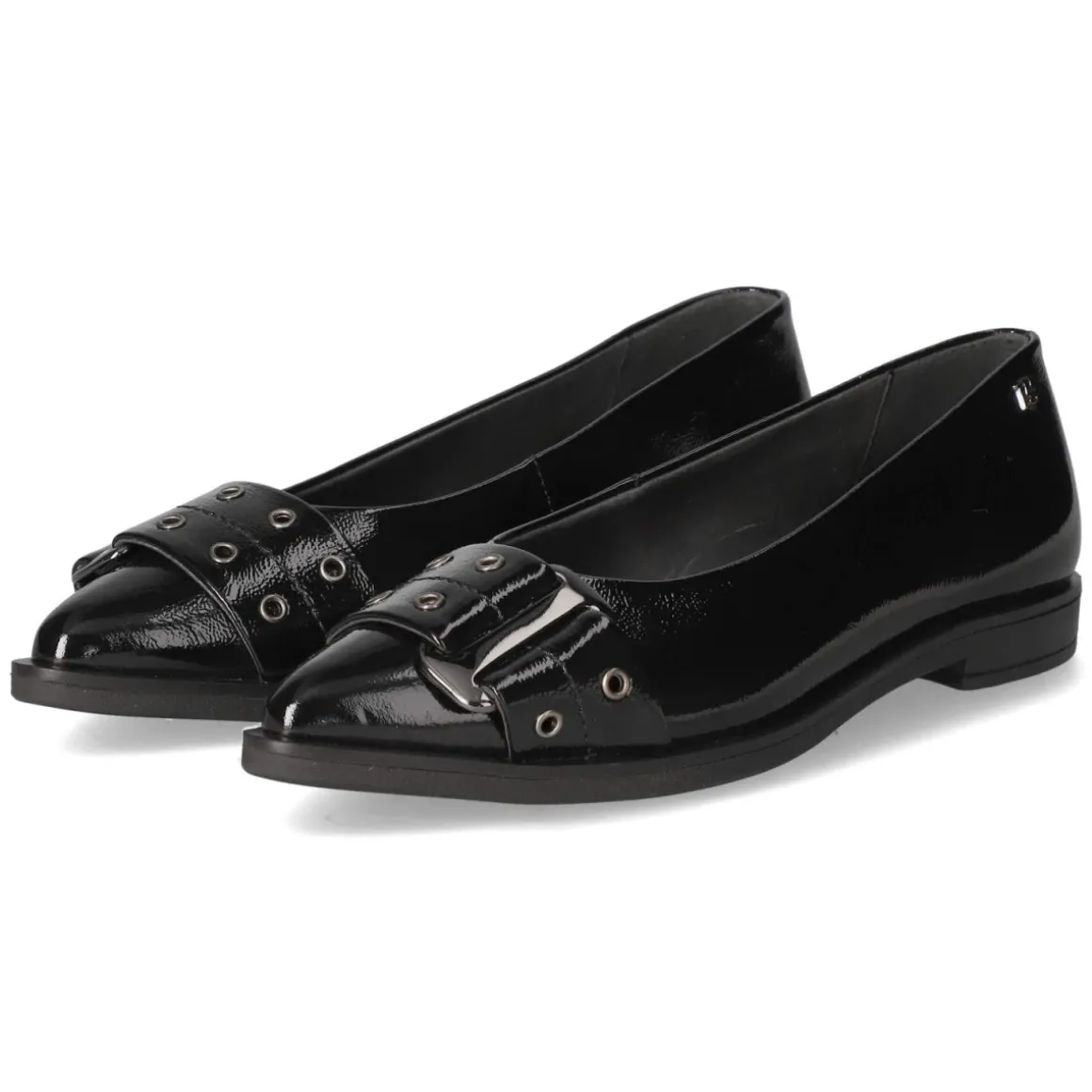 Feine Linien und Glanz bestimmen den Auftritt dieser Damen-Ballerinas von Paul Green. Schwarzes Lackleder mit leichtem Knautschlack verleiht eine edle Optik, die durch einen schmalen Zierriemen mit Nieten und Zierschnalle akzentuiert wird. Die spitz zulaufende Form streckt optisch und passt zu formellen wie smart-casual Looks. Innen sorgt ein angenehmes Lederfutter mit gepolsterter Lederdecksohle für langanhaltenden Komfort, während die flexible, rutschfeste Laufsohle leises, sicheres Auftreten ermöglicht. Das schlupffreundliche Design ohne Verschluss und die reguläre Passform machen das Modell alltagstauglich vom Büro bis ins Abendprogramm. Dezente Markendetails runden das Erscheinungsbild ab. Modetipp: Besonders stimmig zu einer knöchelfreien Zigarettenhose, feiner Seidenbluse und einem taillierten Blazer; abends zu einem satinierten Slipdress und minimalistischen Schmuck.
