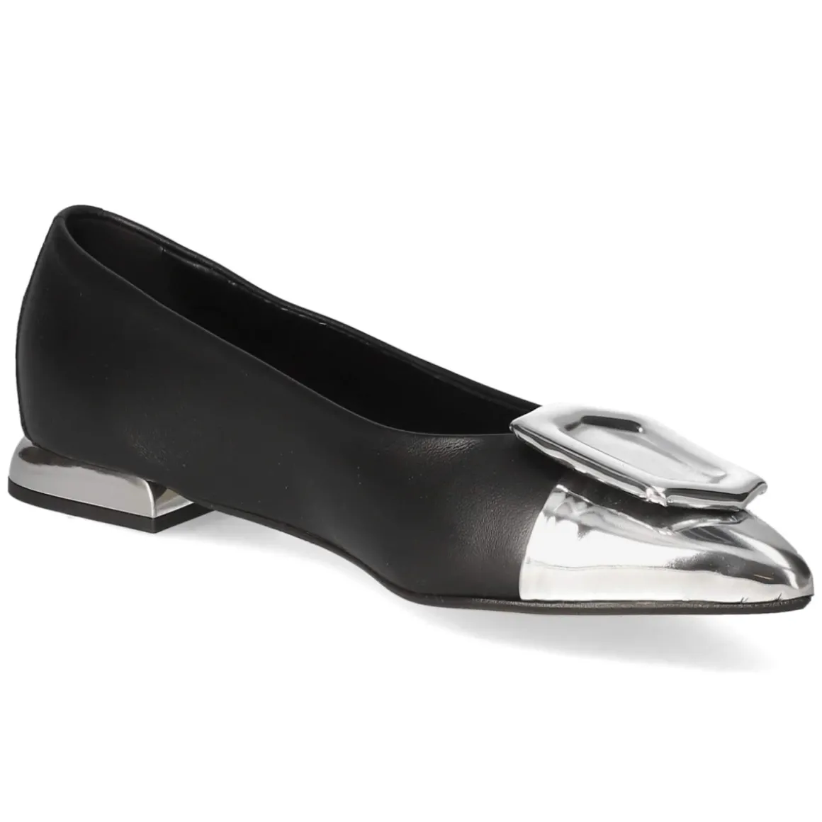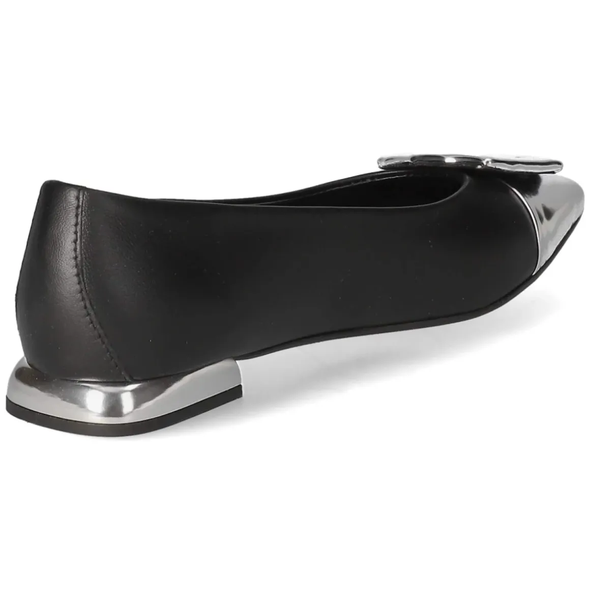 Die Kaerlek Ballerinas vereinen feminine Eleganz mit entspanntem Komfort. Das Modell aus hochwertigem Glattleder setzt mit spitzer Silhouette und silberfarbener Schuhspitze sowie Absatz einen edlen Akzent. Ein aufgesetztes, silberfarbenes Zierelement unterstreicht den modernen Look, während der 1,5 cm hohe Blockabsatz für Stabilität sorgt. Die atmungsaktive Echtlederverarbeitung und die hautfreundliche Lederdecksohle unterstützen ein angenehmes Klima im Schuh. Dank unkompliziertem Einstieg und geringem Gewicht gelingen schnelle Outfits im Alltag. Eine verstärkte Ferse erhöht die Formstabilität, die flexible Laufsohle sorgt für geschmeidigen Abrollkomfort. Das Modell für Damen fällt normal aus und begleitet Erwachsene stilsicher vom Büro bis zum Dinner. Modetipp: Zu cropped Stoffhose und feinem Strickpullover entfaltet die spitze Form ihre schlanke, elegante Wirkung.