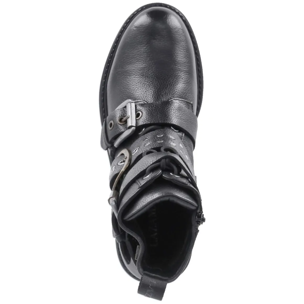 Abby von LAZAMANI interpretiert den Biker-Stiefel modern und alltagstauglich. Schwarzes Glattleder mit runder Kappe trifft auf einen 4,5‑cm‑Blockabsatz, der stabilen Stand gibt, während die rutschfeste Profilsohle zuverlässigen Grip liefert. Schnürung und seitlicher Reißverschluss ermöglichen einen individuellen Sitz, drei Riemen mit Nieten und Schnallen am vorderen Schaft setzen markante Akzente und verstärken die trendige Retro-Optik. Langlebiges Echtleder und die weiche Lederdecksohle sorgen für angenehmes Fußklima, die gepolsterte Zunge und der verstärkte Fersenbereich erhöhen den Komfort zusätzlich; die Anziehlasche macht das Hineinschlüpfen leicht. Das Modell fällt normal aus und passt zu urbanen Looks ebenso wie zu femininen Styles. Modetipp: Zu Cropped-Flare-Jeans und einem strukturierten Wollmantel entsteht ein spannender Mix aus lässiger Attitüde und eleganter Silhouette.