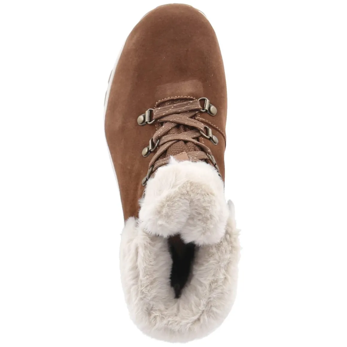 Skechers Boots MOONLIGHT RIDGE vereinen wintertaugliche Funktion mit sportlicher Optik. Das Obermaterial aus Leder und Textil zeigt sich in warmem Braun, während Warmfutter und eine textile Decksohle für behaglichen Komfort sorgen. Dank wasserfesten und atmungsaktiven Eigenschaften bleibt das Fußklima angenehm, selbst bei nassem Wetter. Die beste Memory-Foam-Fußbettung federt jeden Schritt weich ab, der verstärkte Fersenbereich stabilisiert zuverlässig. Eine flexible, rutschfeste Laufsohle mit Sichtfenster bietet sicheren Grip, die runde Spitze und der Schnürverschluss gewährleisten eine bequeme Passform. Das Modell fällt normal aus und richtet sich an Damen, die Funktion und Stil schätzen. Modetipp: Mit gesteppter Parka-Jacke, Strickleggings und groben Wollsocken entsteht ein lässiger Winterlook, der das Kunstfell an der Krempe harmonisch aufgreift.