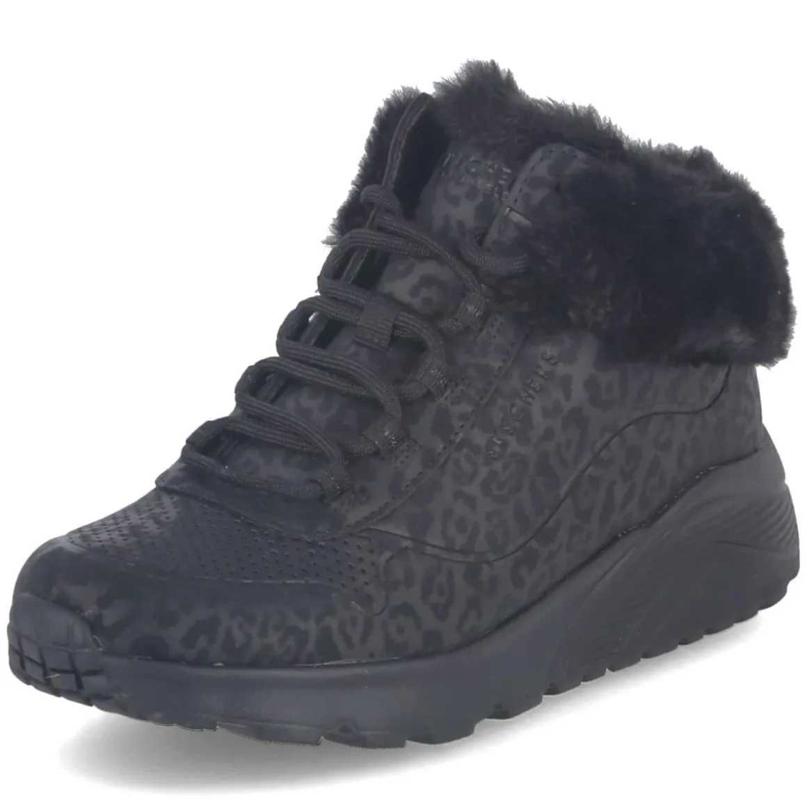 Der Skechers Boots UNO LITE COZY LEOPARD für Kinder verbindet urbanen Look mit funktionalem Komfort. Das schwarze Obermaterial aus Synthetik präsentiert einen dezenten Leopardenprint und eine runde Schuhspitze, während weicher Kunstfellschaft ohne Echtfell-Anteil für kuschelige Momente sorgt. Ein leicht wärmendes Futter begleitet zuverlässig durch kühle Tage. Dank Schnürung und seitlichem Reißverschluss gelingt das An- und Ausziehen einfach, die Passform fällt normal aus. Die rutschfeste Laufsohle bietet Halt auf nassem Asphalt und glatten Schulfluren, das relaxt leichte Design schont kleine Füße bei langen Tagen. Die beste Memory-Foam-Fußbettung polstert jeden Schritt angenehm, die Waschmaschinen-Eignung sorgt für unkomplizierte Pflege. Modetipp: Zu einer schwarzen Thermo-Leggings, Oversize-Strick in Creme und einer wattierten Steppjacke wird der subtile Animal Print zum trendigen Hingucker im Kinder-Outfit.