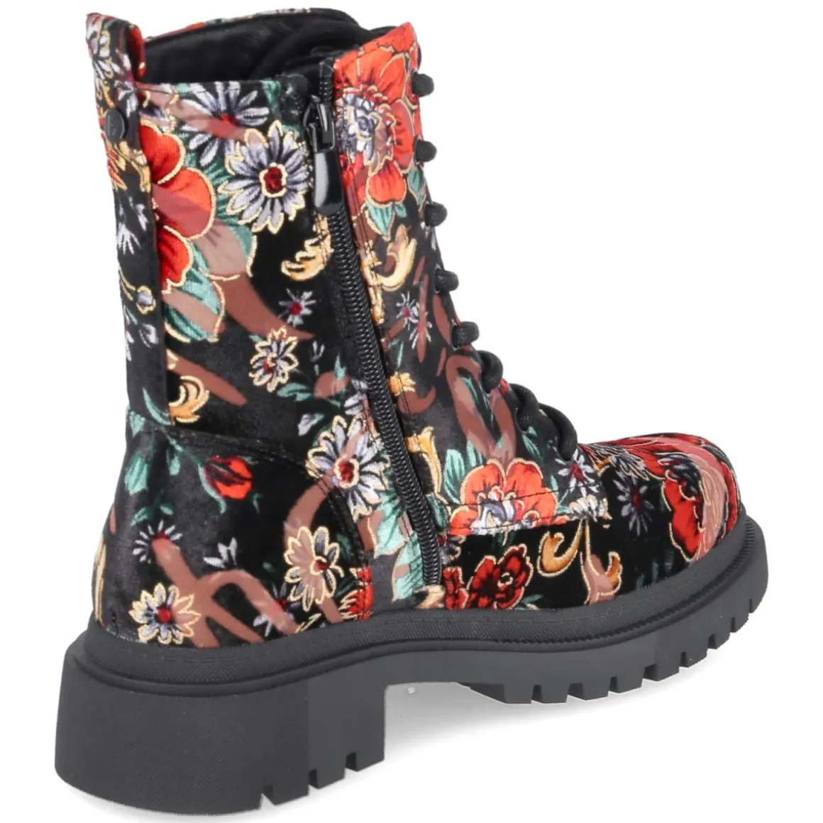 La Strada zeigt mit diesen Damen-Boots eine elegante Fusion aus Komfort und Statement-Design. Schwarzes Textil mit samtiger Oberfläche bildet die Bühne für ein barockes Blumenmuster mit feinen goldenen Details, das der runden Silhouette edlen Glanz verleiht. Der 4 cm hohe Blockabsatz sorgt für Stabilität im Alltag, während Schnürsenkel und Reißverschluss ein unkompliziertes An- und Ausziehen ermöglichen. Eine Anziehlasche unterstützt zusätzlich. Innen verwöhnt leichtes Futter an kühlen Tagen, das Memory Foam Fußbett passt sich weich an und die flexible, rutschfeste Profilsohle bietet sicheren Halt. Mit Decksohle aus Textil, normaler Passform und dem Versprechen für den perfekten Auftritt richtet sich dieses Modell an Erwachsene, die Ausdruck und Bequemlichkeit verbinden wollen. Modetipp: Zu Midikleid in Uni-Schwarz und strukturiertem Wollmantel entsteht ein stilvoller Look mit subtiler Opulenz.