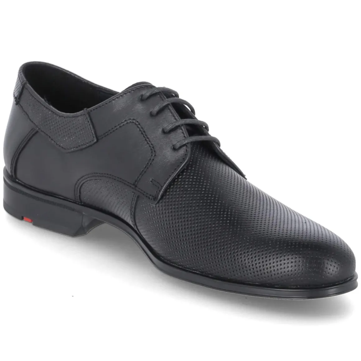 Der Businessschuh LEVIN von LLoyd verbindet klare Linien mit subtiler Raffinesse. Fein geprägte Partien und präzise Ziernähte verleihen dem schwarzen Glattleder eine dezente, gemusterte Tiefe, während die runde Schuhspitze und der 3 cm hohe Blockabsatz klassische Souveränität ausstrahlen. Langlebiges Echtleder trifft auf ein ledernes Fußbett mit integriertem Fersenpolster, das den Komfort über lange Tage hinweg spürbar erhöht. Die verstärkte Ferse unterstützt den Halt, die flexible, rutschhemmende Laufsohle ohne Profil sorgt für leises, sicheres Auftreten. Mit Schnürung und eleganter Optik eignet sich LEVIN für formelle Anlässe wie für den gepflegten Büroalltag. Modetipp: Mit schmalem Anzug in Anthrazit und schwarzem Ledergürtel gelingt ein stimmiger, moderner Business-Look.
