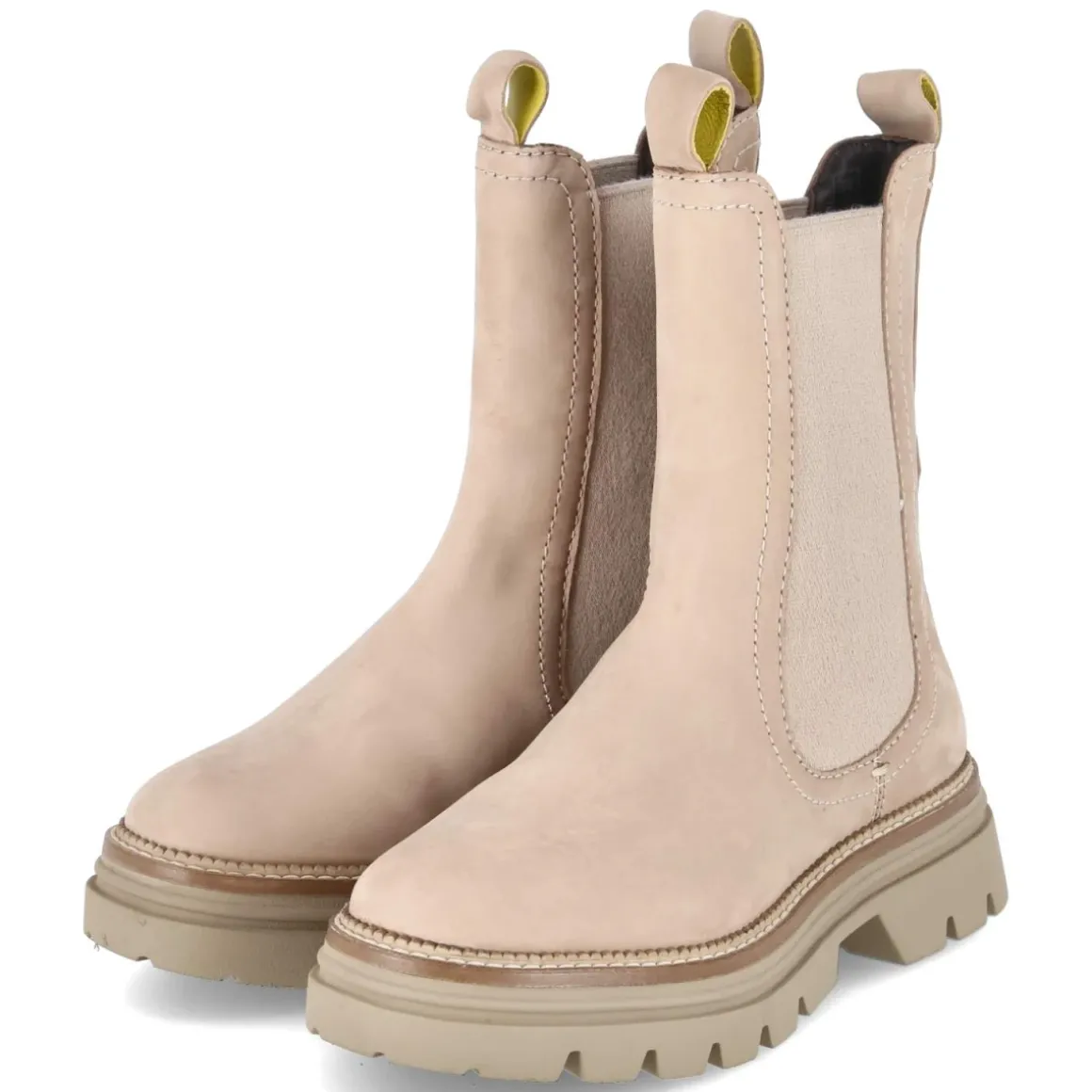 Zeitloser Begleiter in Beige: der Salamander Chelsea Boot für Damen überzeugt durch weiches Rauleder aus langlebigem Echtleder und eine moderne, klare Linienführung. Die runde Spitze und der 5 cm hohe Blockabsatz sorgen für komfortables Abrollen und eine feminine Silhouette. Zwei große, seitliche Elastikeinsätze und Anziehlaschen erleichtern das Hineinschlüpfen, der schmale Einstieg und die schmale, verstärkte Ferse geben sicheren Halt. Die starke Profilsohle bietet Grip bei wechselhaften Bedingungen, die textile Decksohle erhöht den Tragekomfort. Dank klassischem, verschlusslosem Design lassen sich vielfältige Looks realisieren; der Fit fällt normal aus und passt zu erwachsenen Zielgruppen. Modetipp: Zu einer hellen Straight-Jeans, Oversize-Strick und einem beigen Wollmantel kombinieren, dazu goldfarbene Accessoires für einen harmonischen Ton-in-Ton-Look.