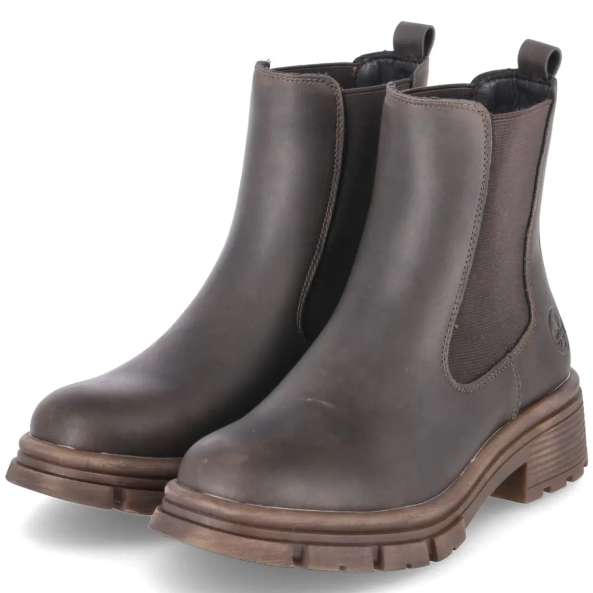 Dieser Chelsea Boot von Rieker verbindet zeitlose Form mit modernem Komfort. Das warme Braun setzt dezente Akzente, die runde Spitze und der 4-cm-Blockabsatz sorgen für eine feminine, zugleich standfeste Silhouette. Elastikeinsätze und Anziehlasche ermöglichen ein müheloses Hineinschlüpfen, die pflegeleichte Oberfläche aus Synthetik bleibt auch im Alltag unkompliziert. Innen unterstützt ein leichtes Futter an kühlen Tagen, die textile Decksohle schmiegt sich angenehm an. Für Trittsicherheit steht die flexible, rutschhemmende Profilsohle, während der verstärkte Fersenbereich stabilisiert. Der Schuh fällt normal aus und begleitet Erwachsene im urbanen Alltag vom Büro bis zur Freizeit. Modetipp: Mit gerader Denim in Dunkelblau und einem Strickmantel in Karamell entsteht ein harmonischer Ton-in-Ton-Look; zum Midikleid und Wollmantel setzt das Modell einen lässig-eleganten Kontrast.