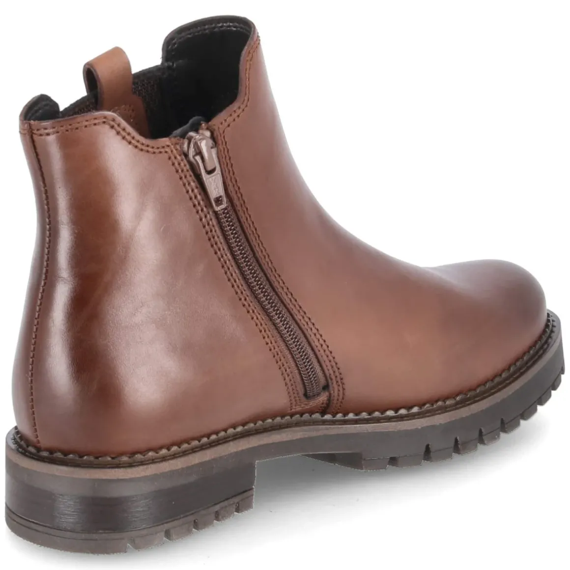 Chelsea Boots von Gabor verbinden zeitlose Silhouette mit durchdachter Funktion. Das braune Glattleder zeigt dezente Farbnuancen und überzeugt als langlebiges Echtleder mit gepflegter Ausstrahlung. Für mühelosen Einstieg sorgt der seitliche Reißverschluss in Kombination mit großem Elastikeinsatz und Zuglasche. Die Passform fällt normal aus, die runde Kappe bietet Zehenfreiheit, der 3‑cm-Blockabsatz verleiht Stabilität im Alltag. Ein gepolstertes, herausnehmbares Wechselfußbett auf textiler Decksohle erhöht den Komfort und lässt Raum für eigene Einlagen. Die flexible, rutschhemmende Profilsohle sorgt für sicheren Halt auf verschiedensten Untergründen. Ein zuverlässiger Begleiter für Damen, der Eleganz und Bequemlichkeit vereint – vielseitig einsetzbar von Office bis Freizeit. Modetipp: Besonders stimmig zu Straight-Leg-Jeans in Dunkelblau und einem sandfarbenen Wollmantel, dazu eine strukturierte Ledertasche im Cognacton.