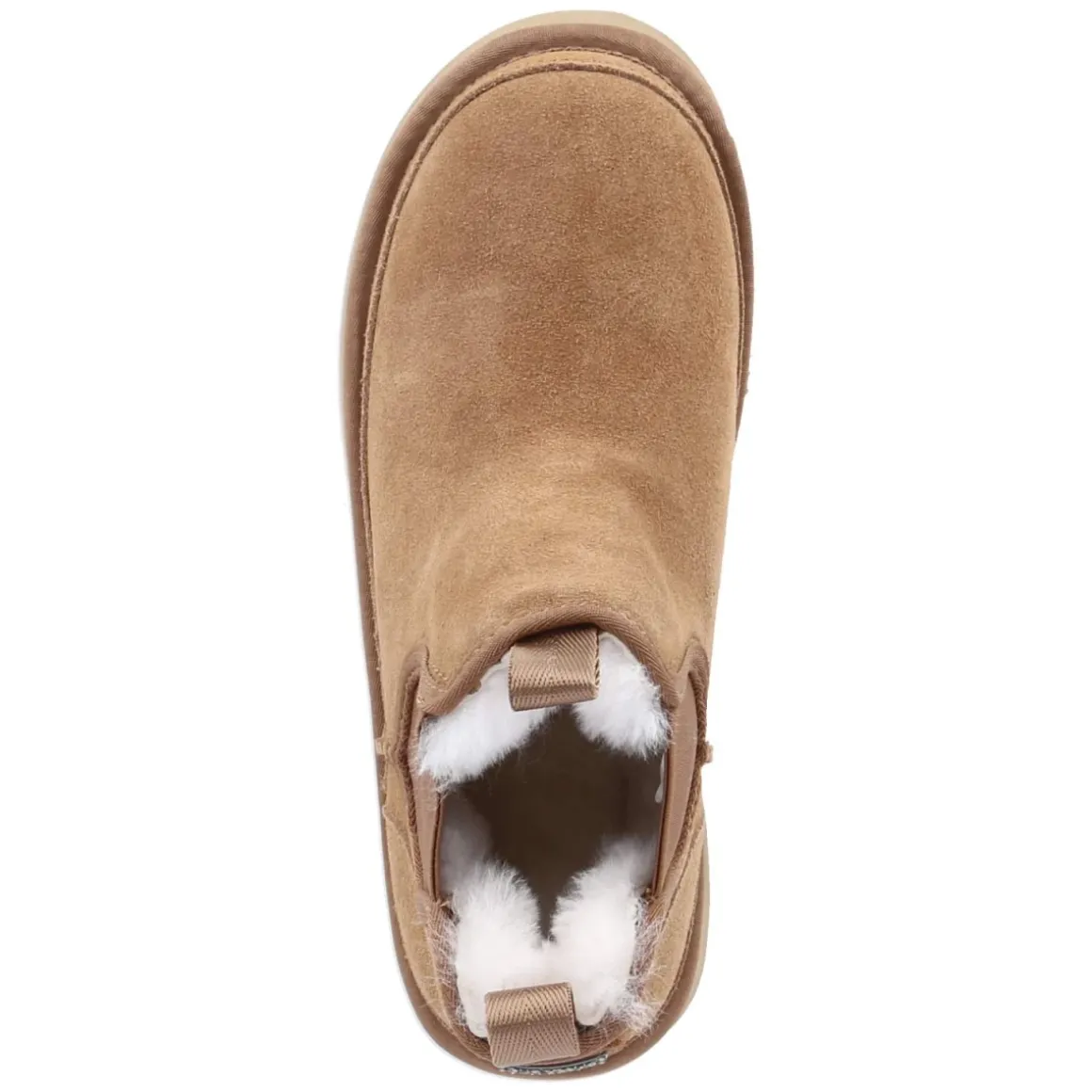 Chelsea Boots EDEN von Australia Luxe vereinen moderne Optik und Funktion. Das braune Rauleder aus robustem Echtleder zeigt markante Nähte und bekommt durch den schmalen Geröllschutzrand eine kernige Note. Zwei seitliche Elastikeinsätze und doppelte Anziehlaschen sorgen für einen unkomplizierten Einstieg, die verstärkte Ferse mit Metall-Label unterstreicht die hochwertige Verarbeitung. Innen wärmt dichtes Lammfellfutter, während die textile Decksohle angenehm soft auftritt. Die starke, zugleich leichte Plateausohle mit 5 cm Höhe streckt die Silhouette und bietet Grip im Alltag. Runde Spitze und normal ausfallende Passform geben zusätzlichen Komfort. Modetipp: Zu verkürzter Straight-Jeans, grobem Strick und einem langen Wollmantel in Camel wirkt das Modell besonders lässig.
