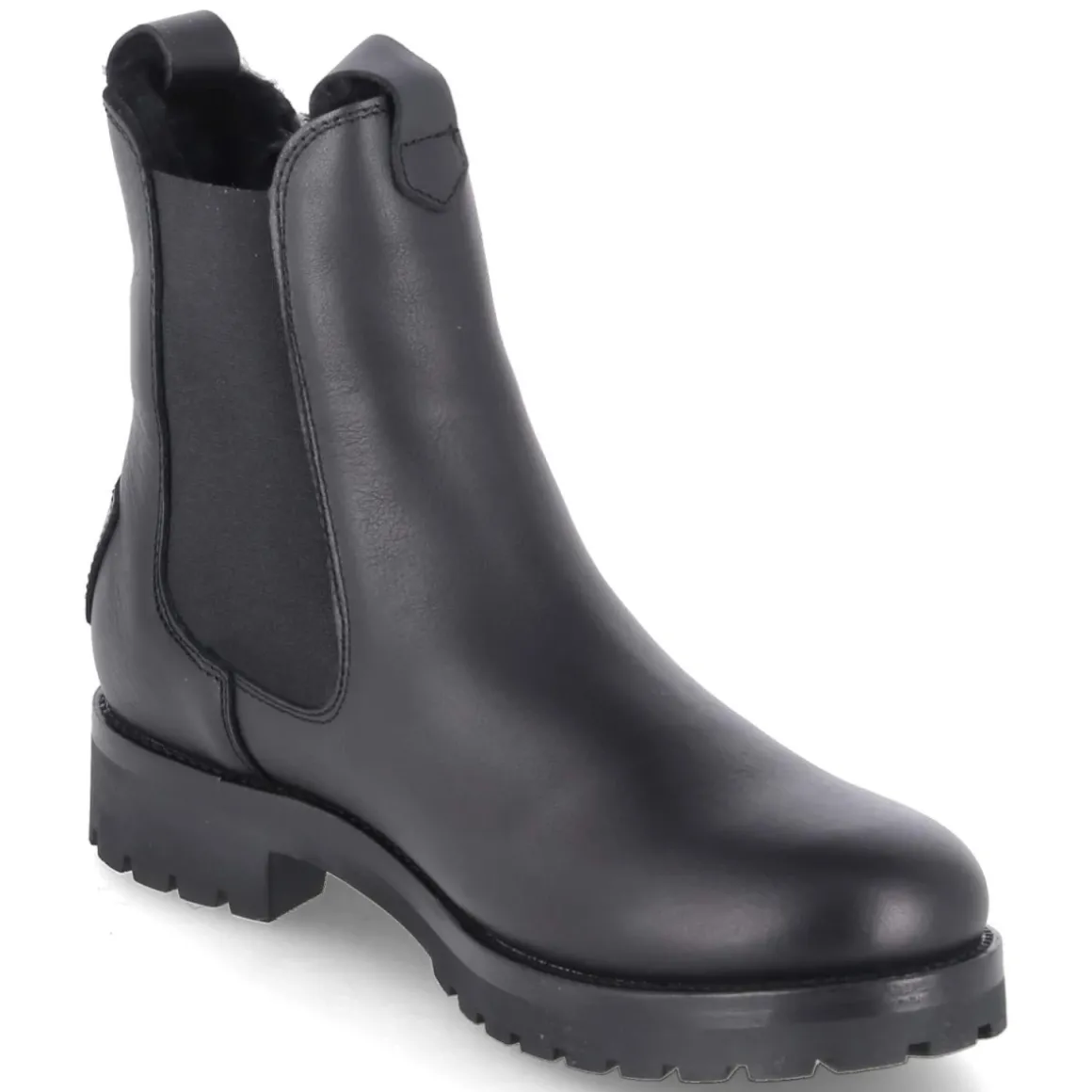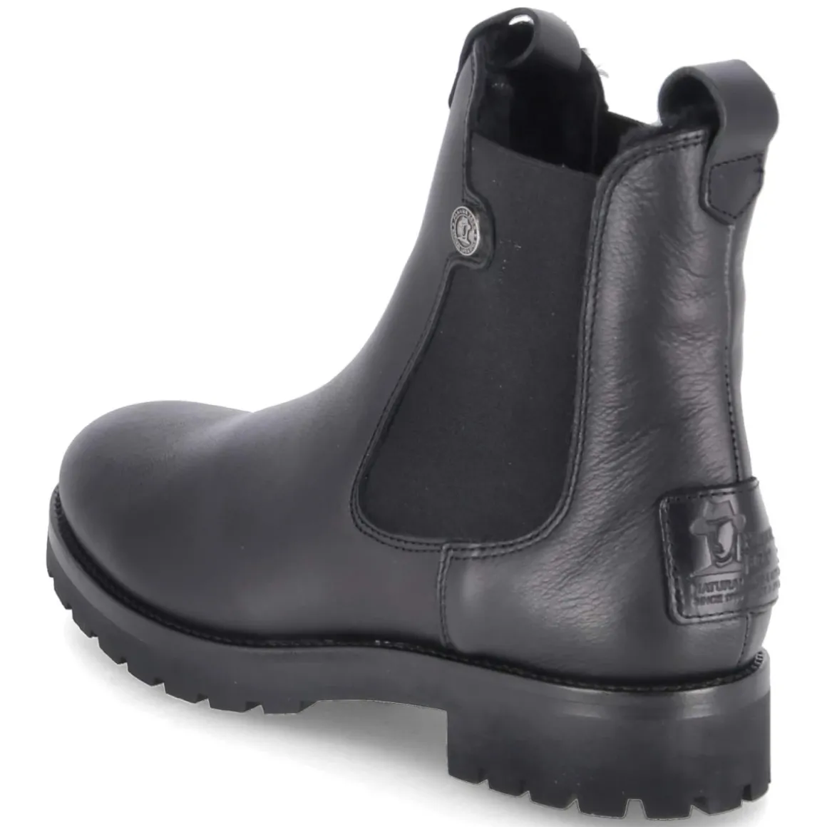 Der Chelsea-Boot FRANCESCA IGLOO von Panama Jack verbindet wetterfeste Funktion und zeitlose Ästhetik. Schwarzes Glattleder, runde Kappe und 4 cm hoher Blockabsatz formen eine klassische Silhouette, die dank stretchigem Einstieg, seitlichen Elastikeinsätzen und zwei Anziehlaschen komfortabel in den Tag startet. Warmes Lammfellfutter trifft auf atmungsaktive Verarbeitung, die Lederdecksohle und das herausnehmbare Fußbett sorgen für ein angenehmes Klima. Die flexible, vernähte und rutschhemmende Profilsohle bietet Halt auf nassem Untergrund, während der verstärkte Fersenbereich mit Markenpatch die robuste Note betont. Wasserfest und zugleich dezent, passt das Modell zu vielen Looks und fällt größengetreu aus. Modetipp: Für einen modernen Kontrast den Boot zu Midirock aus Strick und Oversize-Wollmantel kombinieren; alternativ verleiht eine gerade, leicht verkürzte Jeans dem klassischen Design lässige Präsenz.