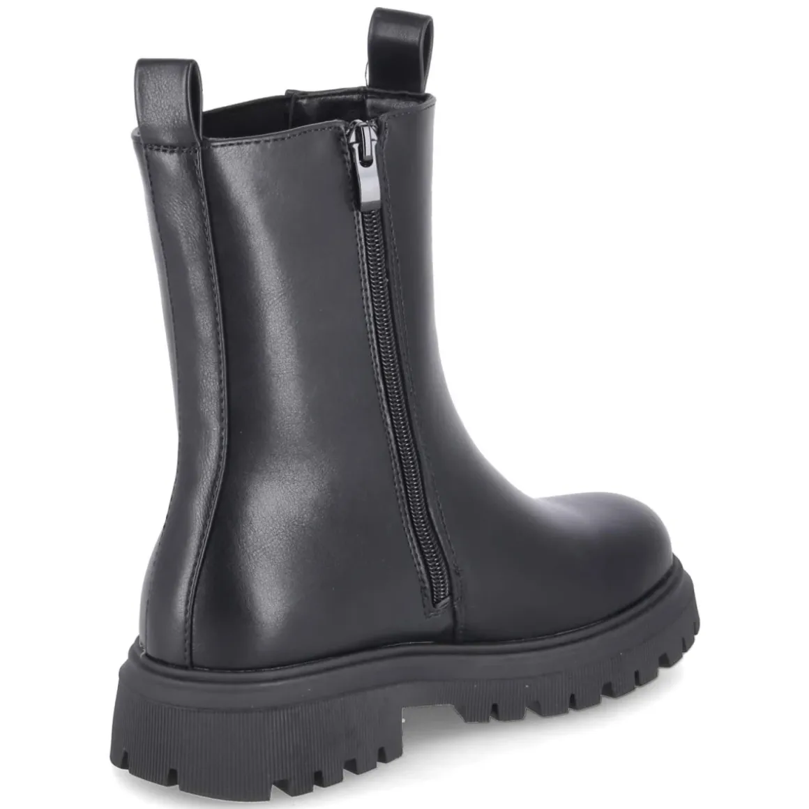 Der klassische Chelsea Boot von Dockers zeigt sich in tiefem Schwarz mit runder Spitze und markantem Blockabsatz von 4 cm. Reißverschluss und seitlicher Elastikeinsatz sorgen für einen bequemen Einstieg, während die Anziehlasche das Hineinschlüpfen zusätzlich erleichtert. Das pflegeleichte Obermaterial aus Textil und Synthetik lässt sich mühelos reinigen und punktet im Alltag. Innen bietet ein leichtes, weiches Fleecefutter angenehme Wärme an kühleren Tagen, die gepolsterte textile Decksohle dämpft jeden Schritt. Eine robuste, rutschhemmende Profilsohle und der verstärkte Fersenbereich geben Halt auf dem Schulweg wie auf dem Spielplatz. Der Schnitt fällt normal aus und eignet sich ideal für Kinderfüße, die Komfort und Stabilität brauchen. Modetipp: Für einen zeitlosen Look zu schwarzer Jeans, gestreiftem Longsleeve und kuscheligem Parka stylen; auch zu Strickkleid und dicker Strumpfhose wirkt der Boot modern.
