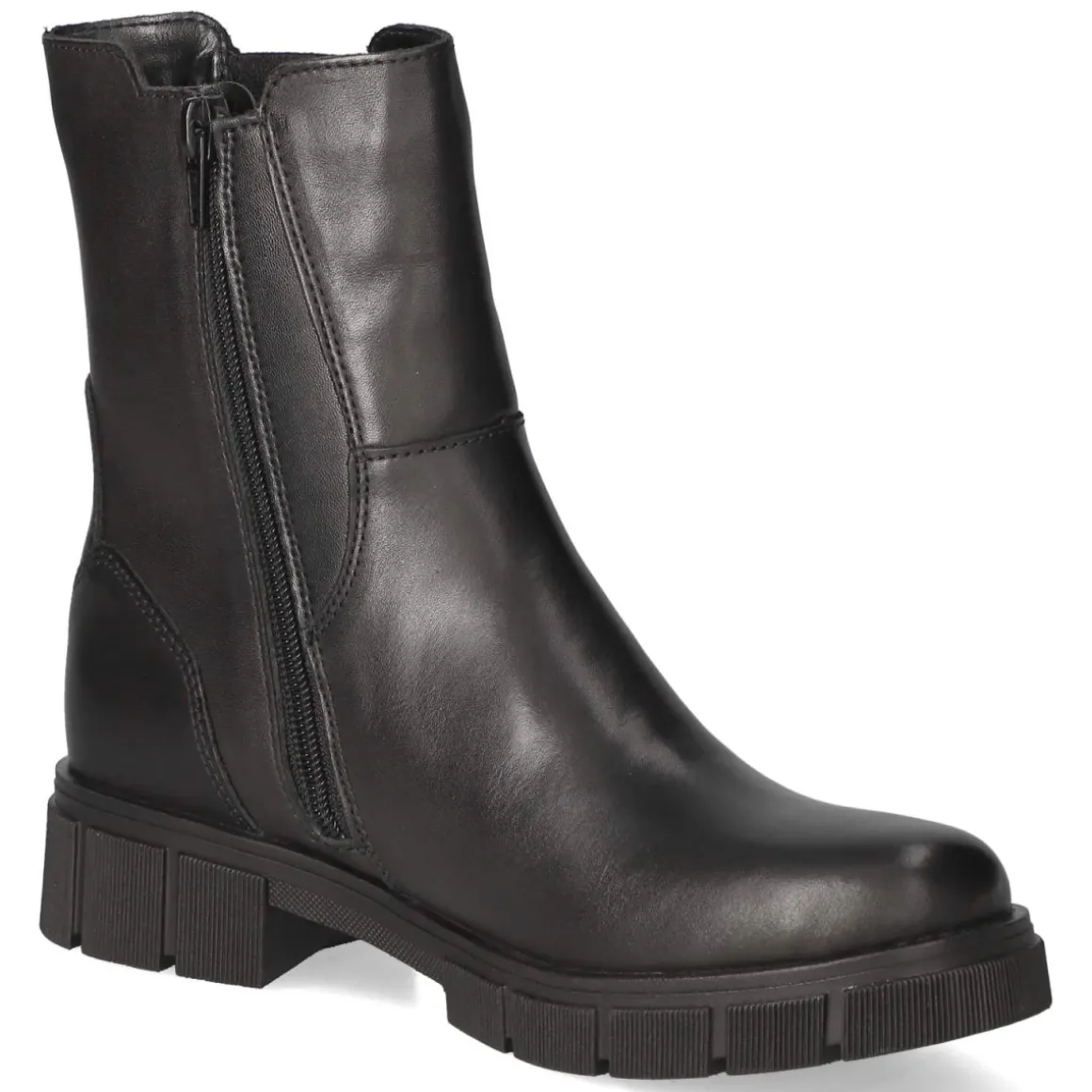 Der Chelsea Boot von Remonte präsentiert sich in schwarzem Glattleder mit feinem Schimmer und klassischer runder Spitze. Das atmungsaktive Echtleder und das leichte Futter umschmeicheln den Fuß an kühlen Tagen, während die textile Decksohle für angenehmes Klima sorgt. Ein 4 cm hoher Blockabsatz hebt sanft an und bleibt stabil, unterstützt von einer flexiblen, rutschfesten Laufsohle. Elastikeinsatz am Schaft und seitlicher Reißverschluss erleichtern den Einstieg und sichern den Sitz; die verstärkte Ferse gibt zusätzlichen Halt. Dezente Markendetails und Ziernähte runden den Look ab. Fällt größengetreu aus und begleitet souverän vom Büro bis ins Wochenende. Modetipp: Zu Cropped‑Denim und Wollmantel oder zum Midikleid mit blickdichten Strümpfen für einen zeitlosen City‑Look.