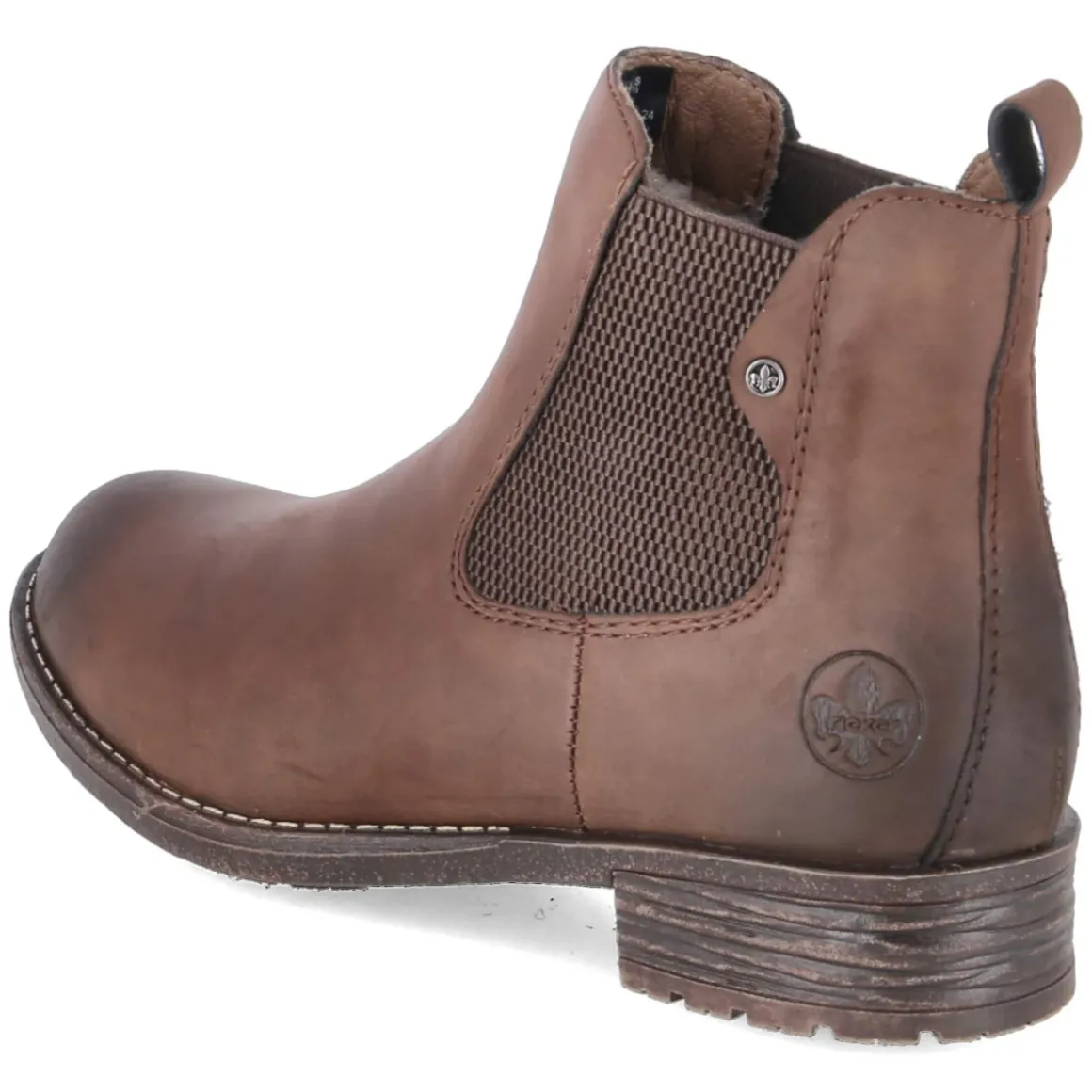 Der Rieker Chelsea Boot für Damen verbindet klassisches Design mit wintertauglichem Komfort. Das braune Obermaterial aus pflegeleichtem Kunstleder zeigt eine zeitlose Silhouette mit runder Spitze, zwei großen seitlichen Elastikeinsätzen und praktischer Anziehlasche. Dank warmem Futter bleiben Füße an kalten Tagen angenehm geschützt, während das relaxt leichte Tragegefühl und die flexible, rutschfeste Laufsohle lange Wege mühelos machen. Der 3 cm hohe Blockabsatz schenkt Stabilität, die textile Decksohle und das Wechselfußbett sorgen für individuelles Wohlbefinden, auch bei Einlagen. Der Schuh fällt normal aus und begleitet Alltag, Büro und City souverän. Modetipp: In Kombination mit dunkelblauem Denim, einem cremefarbenen Strickpullover und einem kamelfarbenen Wollmantel entsteht ein moderner, urbaner Look, der den warmen Braunton elegant aufgreift.