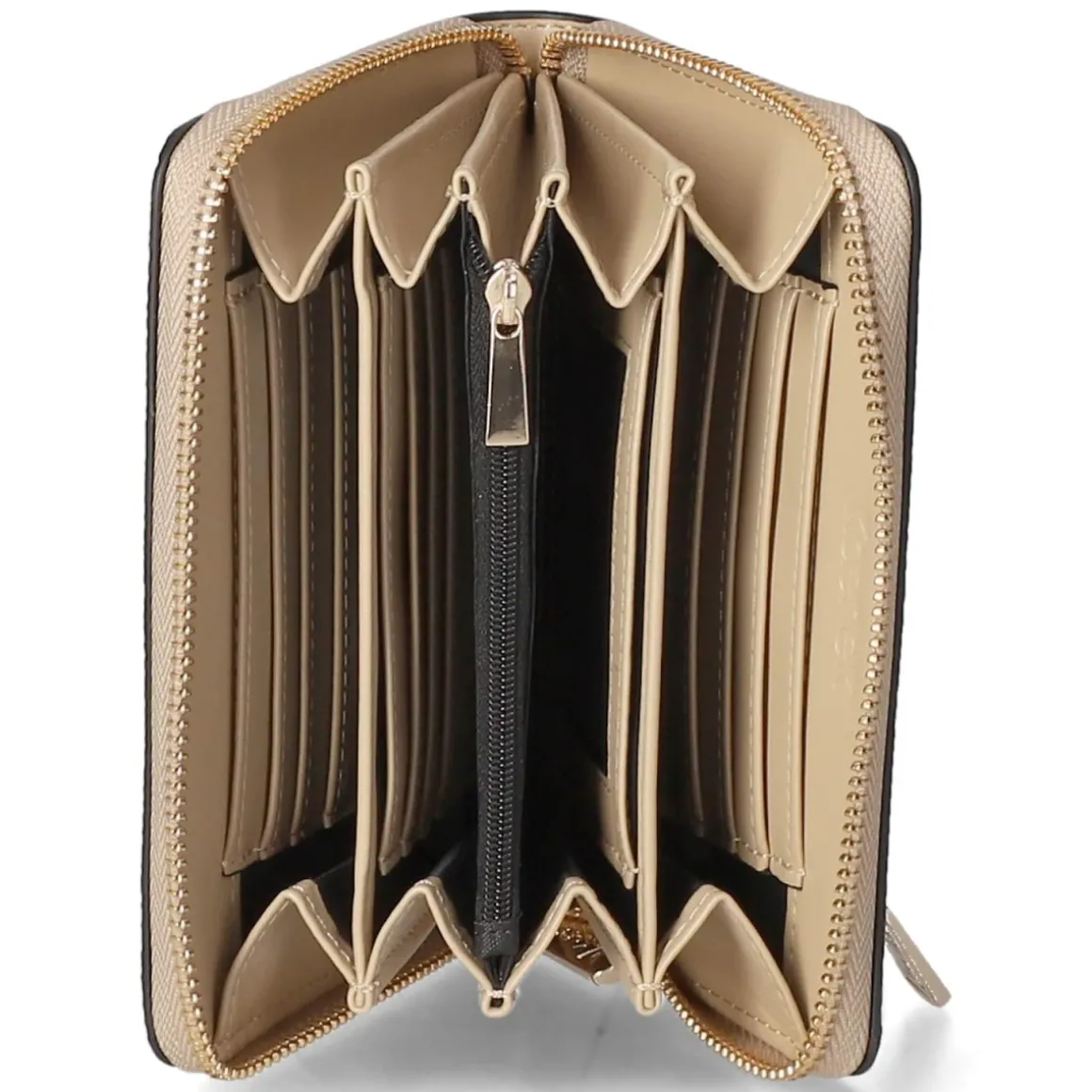 Diese beigefarbene Geldbörse setzt auf zeitlose Eleganz in kompakten Maßen von ca. 10 x 15 x 3 cm. Der rundumlaufende Reißverschluss schützt den Inhalt zuverlässig, während goldglänzende Highlights dem puristischen Design eine edle Note verleihen. Durchdachte Innenaufteilung mit 13 Kartenfächern sorgt für Übersicht, das Reißverschlussmünzfach bewahrt Kleingeld klapperfrei auf und ein Reißverschluss-Hauptfach hält Belege und Scheine ordentlich an Ort und Stelle. Ein praktisches Reißverschluss-Außenfach ermöglicht schnellen Zugriff auf häufig genutzte Essentials. Die sanfte Beige-Nuance harmoniert mit Business- und Casual-Looks gleichermaßen und passt mühelos in kleine wie größere Handtaschen. Modetipp: Zur monochromen Kombination aus Creme, Beige und Taupe stylen und mit filigranen Gold-Accessoires sowie einem strukturierten Blazer modern abrunden.
