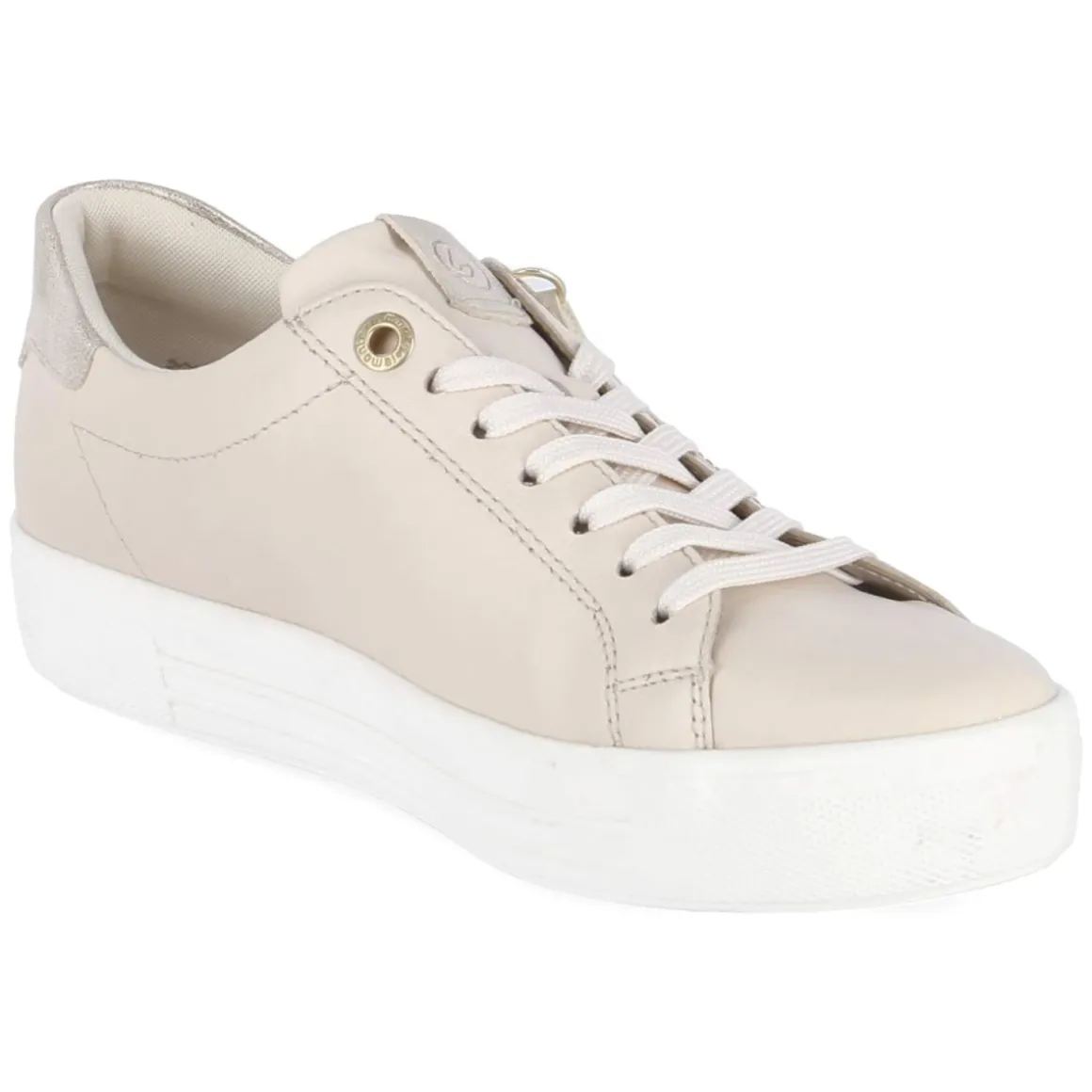 Dieser Remonte Halbschuh in sanftem Beige vereint sportives Design mit eleganten Details. Das langlebige Glattleder zeigt eine feinere Struktur, während golden glänzende Highlights subtile Akzente setzen. Die runde Schuhspitze und die verstärkte Ferse bieten angenehmen Raum und verlässliche Stabilität. Leicht am Fuß und unterstützt von einer starken Laufsohle, begleitet das Modell mühelos durch lange Tage. Schnürung und Reißverschluss ermöglichen eine individuelle Weite und schnelles An- und Ausziehen. Die textile Decksohle liegt weich am Fuß, das gepolsterte Wechselfußbett sorgt für zusätzlichen Komfort und lässt sich bei Bedarf austauschen. Die Passform fällt normal aus, wodurch die Größenwahl unkompliziert bleibt. Modetipp: Mit hell gewaschener Straight-Jeans, sandfarbenem Trench und zartem Goldschmuck entsteht ein zeitloser City-Look.