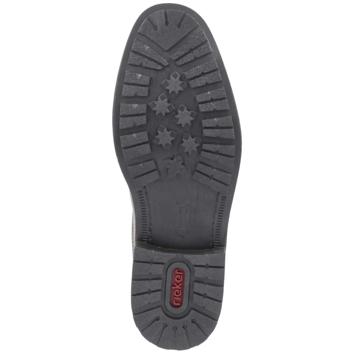 Dieser Herren-Halbschuh von Rieker interpretiert klassisches Design mit moderner Alltagstauglichkeit. Das braune Obermaterial aus Kunstleder zeigt eine angenehm pflegeleichte Oberfläche, während die runde Spitze und der 3 cm hohe Blockabsatz für eine zeitlose Silhouette sorgen. Schnürsenkel garantieren sicheren Sitz, die hautfreundliche Lederdecksohle und ein gepolstertes Lederfußbett erhöhen den Tragekomfort spürbar. Ein weich gepolsterter Einstiegsbereich und die verstärkte Ferse unterstützen Halt und Stabilität. Die flexible, rutschhemmende Laufsohle mit leichtem Profil bietet verlässliche Bodenhaftung auf verschiedenen Untergründen. Der Schuh fällt normal aus und eignet sich perfekt für Büro, City und Freizeit. Modetipp: Zu einer sandfarbenen Chino, Feinstrickpullover und passendem Ledergürtel in warmen Brauntönen entsteht ein harmonischer, smarter Look.