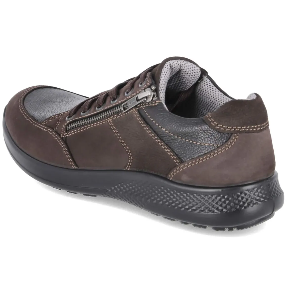 Der Herren-Halbschuh CAMPUS von Jomos verbindet sportliches Design mit alltagstauglichem Komfort. Das Obermaterial aus langlebigem Echtleder in warmem Braun zeigt sich als hochwertiges Rauleder mit wertiger Haptik, die runde Spitze unterstreicht den entspannten Charakter. Schnürsenkel und seitlicher Reißverschluss ermöglichen eine präzise Anpassung und zugleich ein schnelles An- und Ausziehen. Ein leicht gepolsterter Einstieg, der verstärkte Fersen- und Zehenbereich sowie die flexible, rutschfeste Laufsohle sorgen für angenehm sicheren Halt. Die textile Decksohle liegt auf einem komfortablen Wechselfußbett, das bei Bedarf gegen eigene Einlagen getauscht werden kann. Der Schnitt fällt normal aus und passt damit verlässlich im Alltag, ob ins Büro oder in die Freizeit. Modetipp: Zu einer schmalen Chino in Sand und einem feinen Strickpullover entsteht ein smarter Casual-Look, alternativ ergänzt eine dunkelblaue Denim mit Leder-Gürtel in Brauntönen den urbanen Stil.
