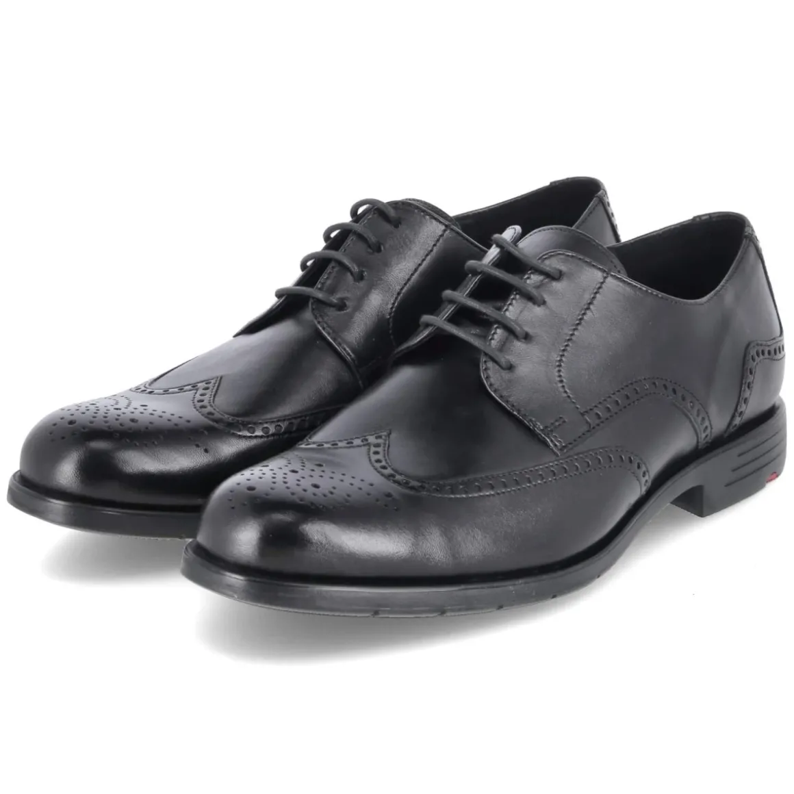 Der Halbschuh EEZY 140W von LLoyd vereint zeitlose Eleganz und funktionalen Komfort. Das Obermaterial aus langlebigem Glattleder in klassischem Schwarz zeigt ein fein gearbeitetes Budapester Lochmuster, das dem runden Leisten eine edle Note verleiht. Ein 2,5 cm hoher Blockabsatz sorgt für souveränen Stand, die Schnürung garantiert eine präzise Passform. Dank Wechselfußbett und synthetischer Decksohle lässt sich der Komfort individuell gestalten. Die X-Motion Laufsohle ist flexibel, rutschfest und mit leichtem Profil ausgestattet, während der verstärkte Fersen- und Zehenbereich zusätzliche Stabilität gibt. Das relaxtes Leichtgewicht fällt normal aus und eignet sich für Business wie Smart Casual. Modetipp: Mit dunkelblauem Anzug, feinem Ledergürtel und einer Messenger-Bag mit kombinierbaren Schultergurten entsteht ein souveräner Office-Look.