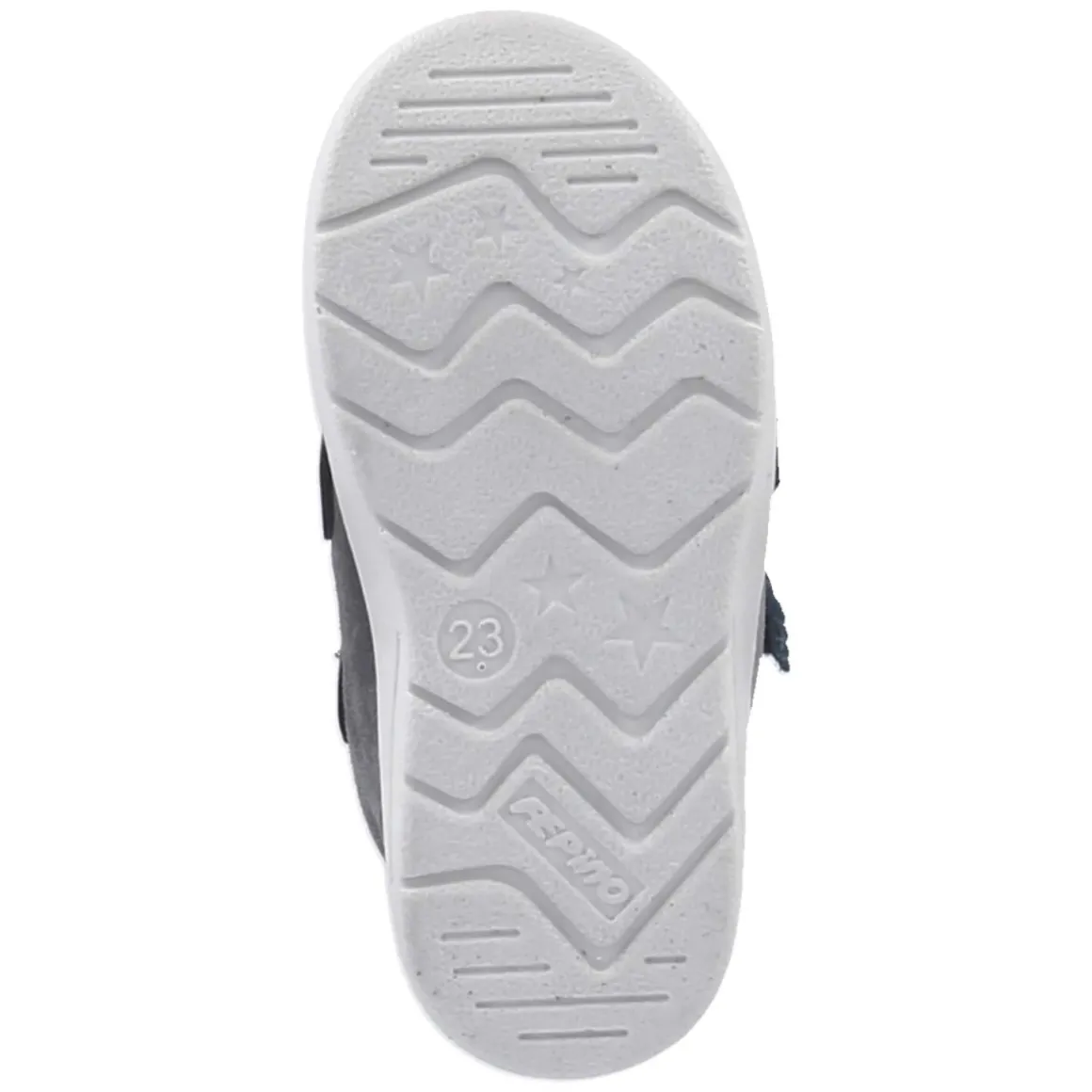 Der Halbschuh KROKI von Pepino begleitet Kleinkinder zuverlässig durch den Alltag. Das weiche Rauleder schmiegt sich angenehm an kleine Füße, während die Sympatex-Ausstattung für atmungsaktiven Schutz sorgt und Nässe draußen hält. Eine hautfreundliche, herausnehmbare Lederdecksohle erlaubt das Lüften und Anpassen, die WMS-Schuhweite Mittel sowie die runde Spitze geben Zehen natürlich Platz. Praktische Klettverschlüsse ermöglichen einen sicheren Halt, der gepolsterte Einstieg und die verstärkte Fersenkappe mit verspieltem Krokodilpatch stabilisieren bei jedem Schritt. Die flexible, rutschhemmende Laufsohle unterstützt ein natürliches Abrollen auf Spielplatz, Kita und auf kurzen Wegen in der Stadt. Der graue Farbton lässt sich leicht kombinieren und fällt normal aus. Modetipp: Mit Denim, Ringelshirt und farbigen Socken entsteht ein zeitloser Look mit fröhlichem Akzent.