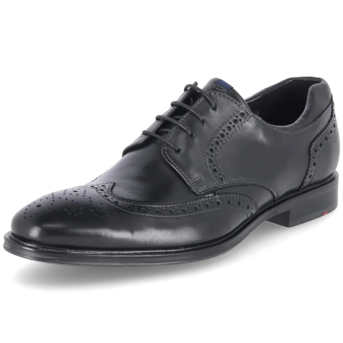 Der Halbschuh MARIAN von LLoyd inszeniert klassische Eleganz mit moderner Funktion. Glattes, langlebiges Echtleder in tiefem Schwarz und ein präzises Budapester Lochmuster prägen die edle Optik, während die runde Spitze zeitlosen Komfort sichert. Der 3 cm hohe Blockabsatz vermittelt stabilen Stand, die flexible, griffige Laufsohle unterstützt auf urbanem Untergrund. Ein gepolsterter Einstieg, das atmungsaktive, gepolsterte Wechselfußbett mit X-Motion-Technologie und die textile Decksohle erhöhen den Tragekomfort spürbar und ermöglichen bei Bedarf den Austausch gegen eigene Einlagen. Die Schnürung sorgt für sicheren Halt, der Passformhinweis fällt normal aus, was die Größenauswahl erleichtert. Ein vielseitiger Begleiter für Business, Event und gehobenes Smart Casual. Modetipp: Mit marineblauem Anzug, feinem Leder-Gürtel und dezent gemusterten Socken entsteht ein souveräner Auftritt vom Meeting bis zum Dinner.
