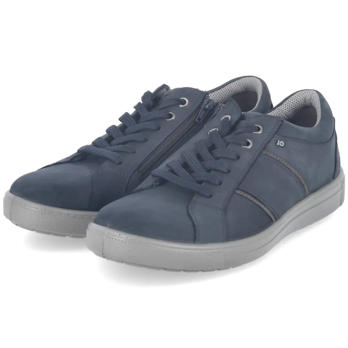 Der Herren-Halbschuh von Jomos verbindet sportliche Leichtigkeit mit alltagstauglichem Komfort. Das Obermaterial aus blauem Rauleder zeigt sich robust und hochwertig, während eine runde Spitze und ein verstärkter Fersenbereich für stabilen Halt sorgen. Innen steigern ein gepolsterter Einstieg und ein weich abgefedertes, herausnehmbares Fußbett den Tragekomfort – ideal auch für eigene Einlagen. Die Textil-Decksohle reguliert angenehm das Fußklima, die flexible Laufsohle begleitet natürliche Abrollbewegungen. Schnürsenkel und seitlicher Reißverschluss erlauben bequemen Einstieg und passgenauen Sitz; der Schnitt fällt normal aus. Vielseitige Kombinationsmöglichkeiten machen das Modell zum zuverlässigen Partner vom Büro bis zur Freizeit. Modetipp: Zur dunklen Jeans und einem strukturierten Sakko entsteht ein lässig-eleganter Look, alternativ mit Chino und Feinstrick für smart casual.