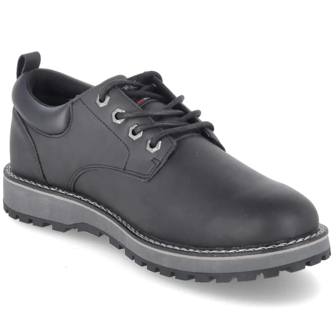 Der Halbschuh von Dockers in zeitlosem Schwarz vereint klassisches Design mit funktionalen Details für den Alltag. Das synthetische Obermaterial zeigt sich pflegeleicht und formstabil, die runde Spitze und die sichere Schnürung sorgen für einen cleanen Look. Eine flexible, griffige Laufsohle bietet soliden Halt auf verschiedenen Untergründen, während die verstärkte Ferse Stabilität gibt. Der gepolsterte Einstieg und das weich gepolsterte, herausnehmbare Fußbett erhöhen den Tragekomfort und erlauben den Einsatz eigener Einlagen. Die textile Decksohle unterstützt ein angenehmes Fußklima, ideal für lange Tage im Büro oder in der Stadt. Die Passform fällt normal aus und eignet sich damit unkompliziert für erwachsene Herren. Modetipp: Mit schwarzer Slim-Fit-Jeans, weißem Oxford-Hemd und einer leichten Harrington-Jacke entsteht ein smarter City-Look, der sich mühelos vom Meeting zum After-Work übertragen lässt.