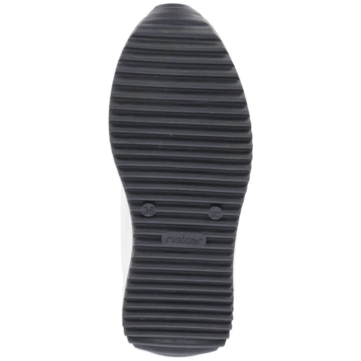 Dieser High Sneaker von Rieker verbindet urbanen Chic mit komfortabler Funktion. Gefertigt aus veganen Materialien zeigt das Modell eine beigefarbene Basis, die vom markanten Leopardenmuster raffiniert akzentuiert wird. Der hohe Schaft und der umlaufende Schutzrand mit Plateauoptik verleihen eine moderne Silhouette, während die runde Schuhspitze lässigen Street-Style unterstreicht. Obermaterial aus Textil und Synthetik, textile Decksohle sowie ein weich gepolstertes, herausnehmbares Fußbett stehen für angenehmes Tragen über viele Stunden. Doppelter Verschluss aus Schnürung und zusätzlichem Reißverschluss plus praktische Anziehlasche erleichtern den Einstieg. Die rutschfeste Laufsohle sorgt für sicheren Tritt auf wechselnden Untergründen. Ein modisches Statement, das Komfort und Design souverän verbindet. Modetipp: Zu verkürzten Straight-Jeans und einem lockeren Strickpullover in Creme wirkt der Sneaker besonders frisch.