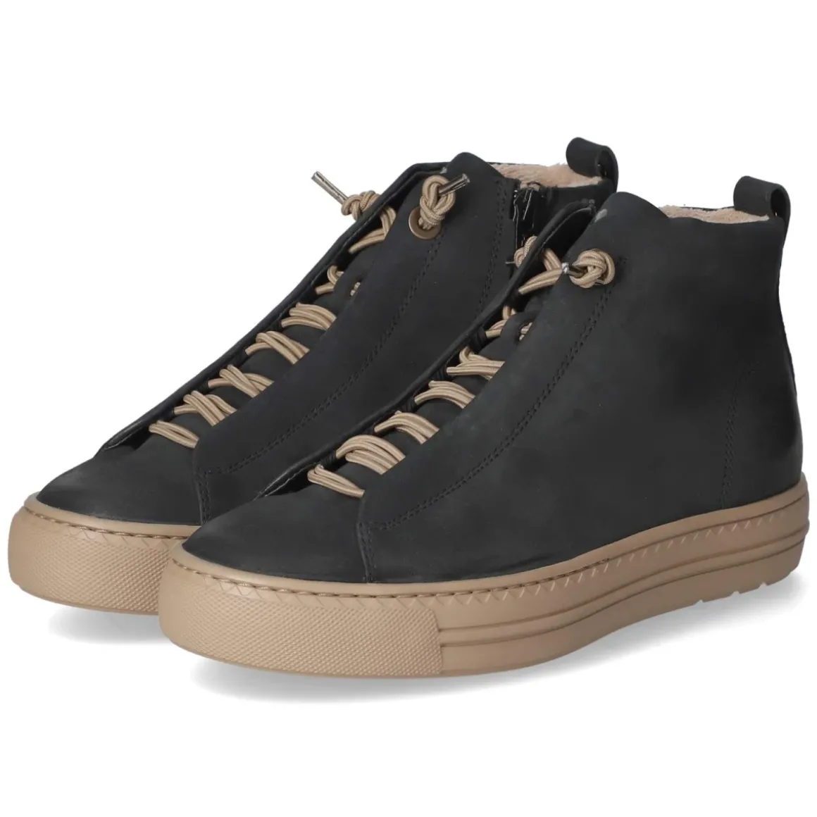 Der High Sneaker von Paul Green verbindet sportliche Höhe mit eleganter Linienführung in sanftem Blau. Weiches Rauleder sorgt zusammen mit der Lederdecksohle für ein atmungsaktives Tragegefühl, während das leichte Futter angenehme Wärme an kühlen Tagen liefert. Die Kombination aus Schnürung und Reißverschluss ermöglicht schnelles An- und Ausziehen; ein zusätzlicher Zipper erhöht den Komfort im Alltag. Der runde Leisten schafft Bewegungsfreiheit, die verstärkte Ferse stabilisiert unauffällig. Eine flexible, rutschhemmende Laufsohle bietet sicheren Halt auf urbanen Wegen. Das Markenemblem setzt einen dezenten Akzent, die Anziehhilfe erleichtert den Start in den Tag. Dank normaler Passform fällt das Modell größengetreu aus und begleitet mühelos Büro, City und Wochenendpläne. Modetipp: Zu Cropped-Jeans in Dunkelgrau und einem cremefarbenen Wollmantel entsteht ein lässig-edler Look; farblich abgestimmte Socken betonen die High-Silhouette wirkungsvoll.