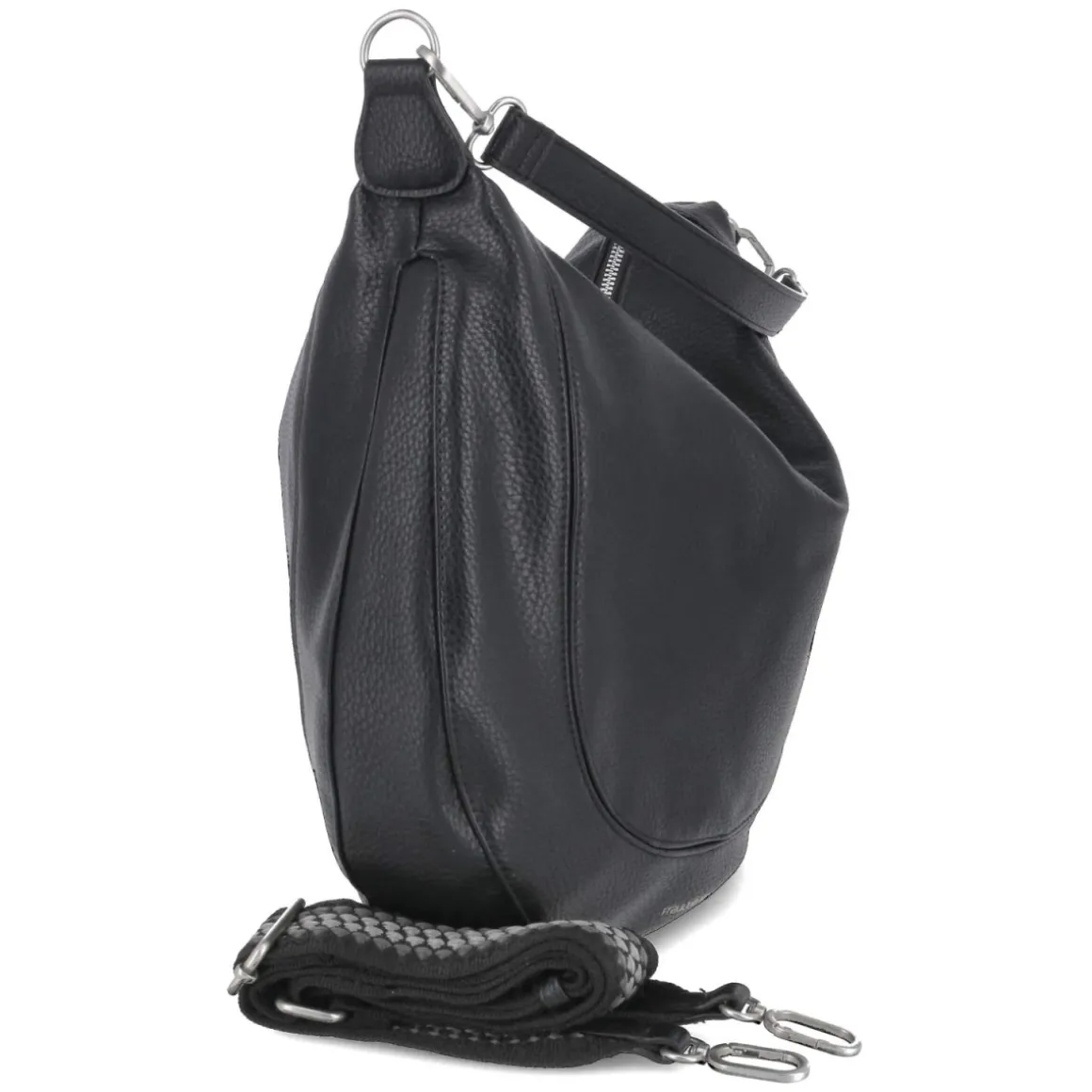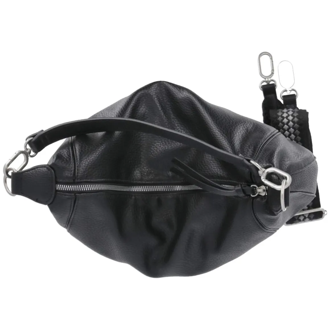 Diese Hobo Bag in elegantem Schwarz verbindet eine sanft geschwungene Form mit praktischer Funktion. Mit ca. 32 x 35 x 11 cm und etwa 10 Litern Volumen bietet sie großzügigen Stauraum, während der verstärkte Boden für verlässliche Standfestigkeit sorgt. Ein Reißverschluss-Hauptfach schützt den Inhalt, innen strukturieren ein Steckfach und ein zusätzliches Reißverschlussfach wichtige Essentials. Der ca. 145 cm lange, verstellbare und abnehmbare Schulterriemen ermöglicht lässiges Crossbody-Tragen, der kurze Gurt mit ca. 30 cm Länge bietet eine elegante Option nah an der Schulter. Die schwarze Farbe lässt sich mühelos in Business- wie Freizeit-Looks integrieren und verleiht jedem Outfit eine moderne Ruhe. Modetipp: Zur Betonung der lässigen Hobo-Silhouette mit einem Oversize-Blazer, gerader Denim und Loafern kombinieren; für den Abend ergänzt ein Slipdress mit feinem Strick und zarten Creolen die minimalistische Ästhetik.
