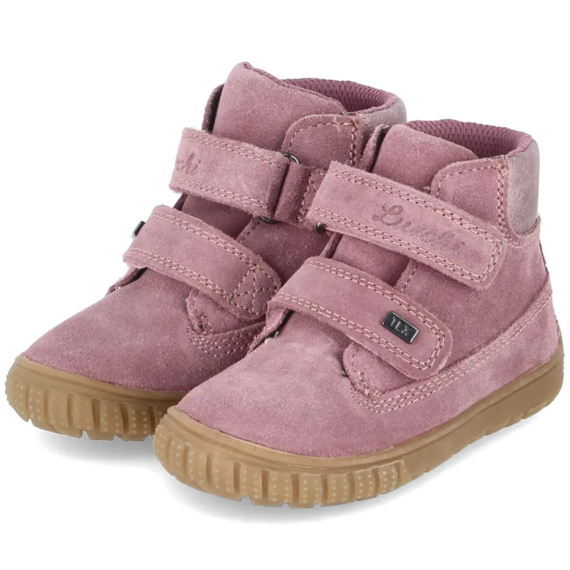 Der Klettboot JULIANO TEX von Lurchi bringt funktionalen Komfort in frischem Rosa an kleine Füße. Weiches Rauleder trifft auf eine Sympatex-Ausstattung, die das wasserfeste Obermaterial zuverlässig gegen Nässe abschirmt und dabei angenehm atmungsaktiv bleibt. Die runde Spitze lässt Zehenfreiheit, während die verstärkte Ferse stabilisiert. Praktische Klettverschlüsse sorgen für schnellen Einstieg; der gepolsterte Schaft erhöht den Tragekomfort im Alltag. Eine rutschhemmende Laufsohle gibt Halt auf feuchten Wegen und glatten Kita-Böden. Mit normal ausfallender Passform und textiler Decksohle ist das Modell ideal für aktive Kleinkinder konzipiert. Modetipp: Das zarte Rosa setzt zu Strickleggings, Thermostrumpfhosen und einem olivfarbenen Parka einen freundlichen Kontrast, der Übergangslooks fröhlich abrundet.