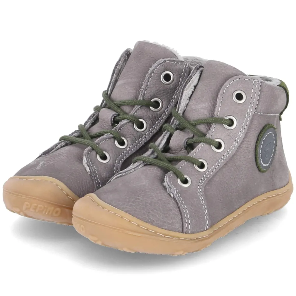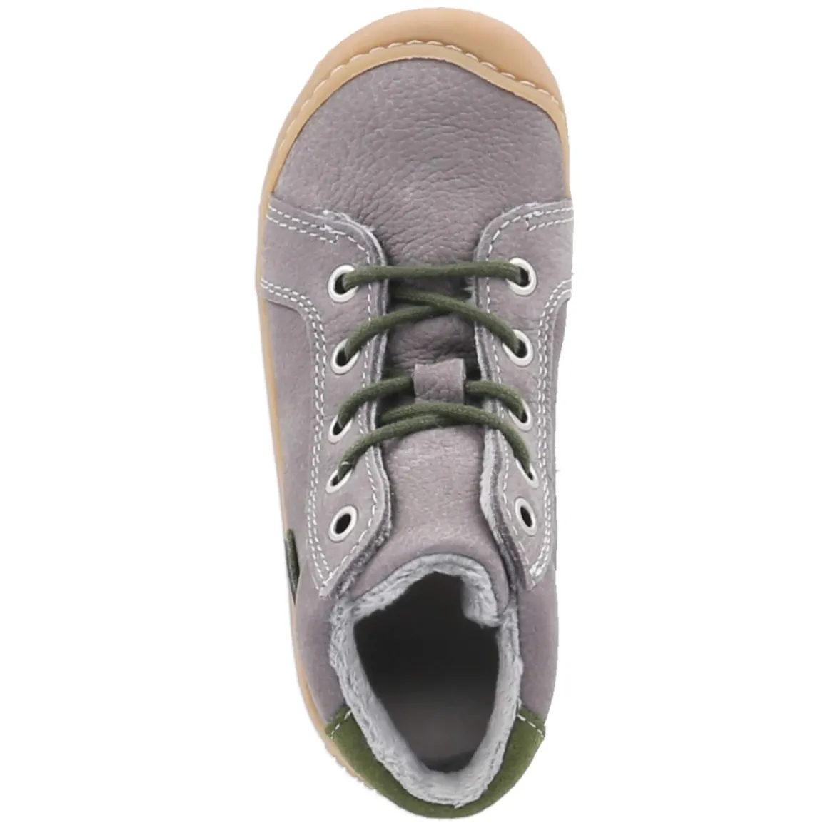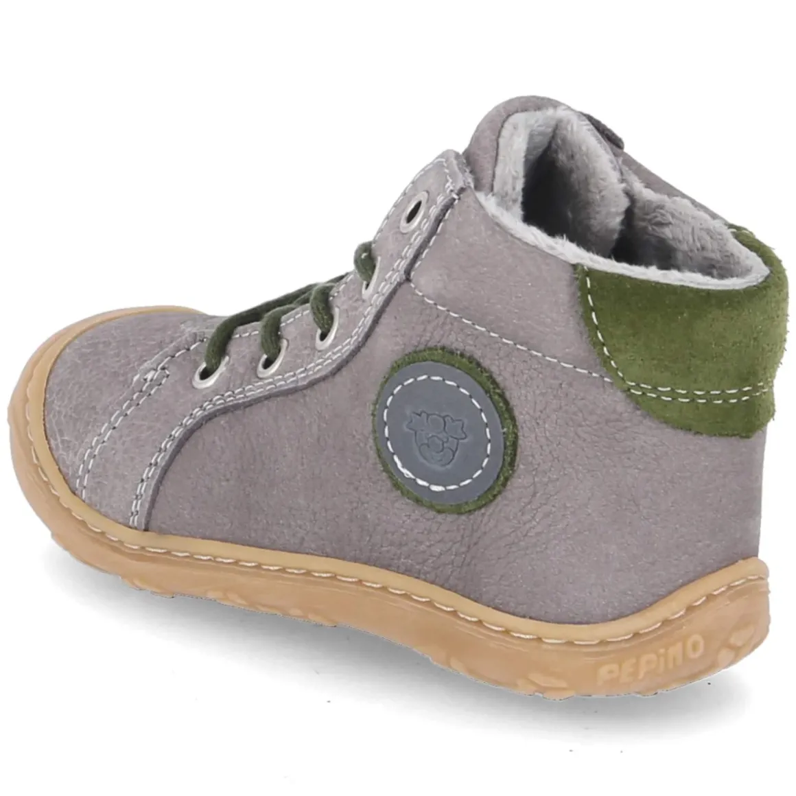 Lauflernschuhe GEORGIE von Pepino begleiten Kleinkinder bei den ersten Schritten mit einem stimmigen Mix aus Schutz und Bewegungsfreiheit. Der Schnitt fällt normal aus, das Obermaterial aus robustem Rauleder in dezentem Grau wird durch frische grüne Akzente belebt und sorgt für den natürlichen Look. Die runde Schuhspitze und die flexible, rutschhemmende Laufsohle mit schützender Zehenkappe unterstützen ein sicheres Abrollen auf unterschiedlichen Untergründen. Ein weiches, leichtes Teddyfutter wärmt an kühlen Tagen, während der gepolsterte Einstieg den Knöchel sanft umschließt. Schnürsenkel sichern den Halt, die Textil-Decksohle und das herausnehmbare Wechselfußbett erleichtern Pflege und Passformkontrolle. Ein verlässlicher Begleiter, der Alltag und Spielplatz souverän meistert. Modetipp: Zu den grauen Tönen harmonieren Strickleggings in Naturfarben, ein wolliger Cardigan und eine Mütze in Grün, die die Akzente aufgreift.