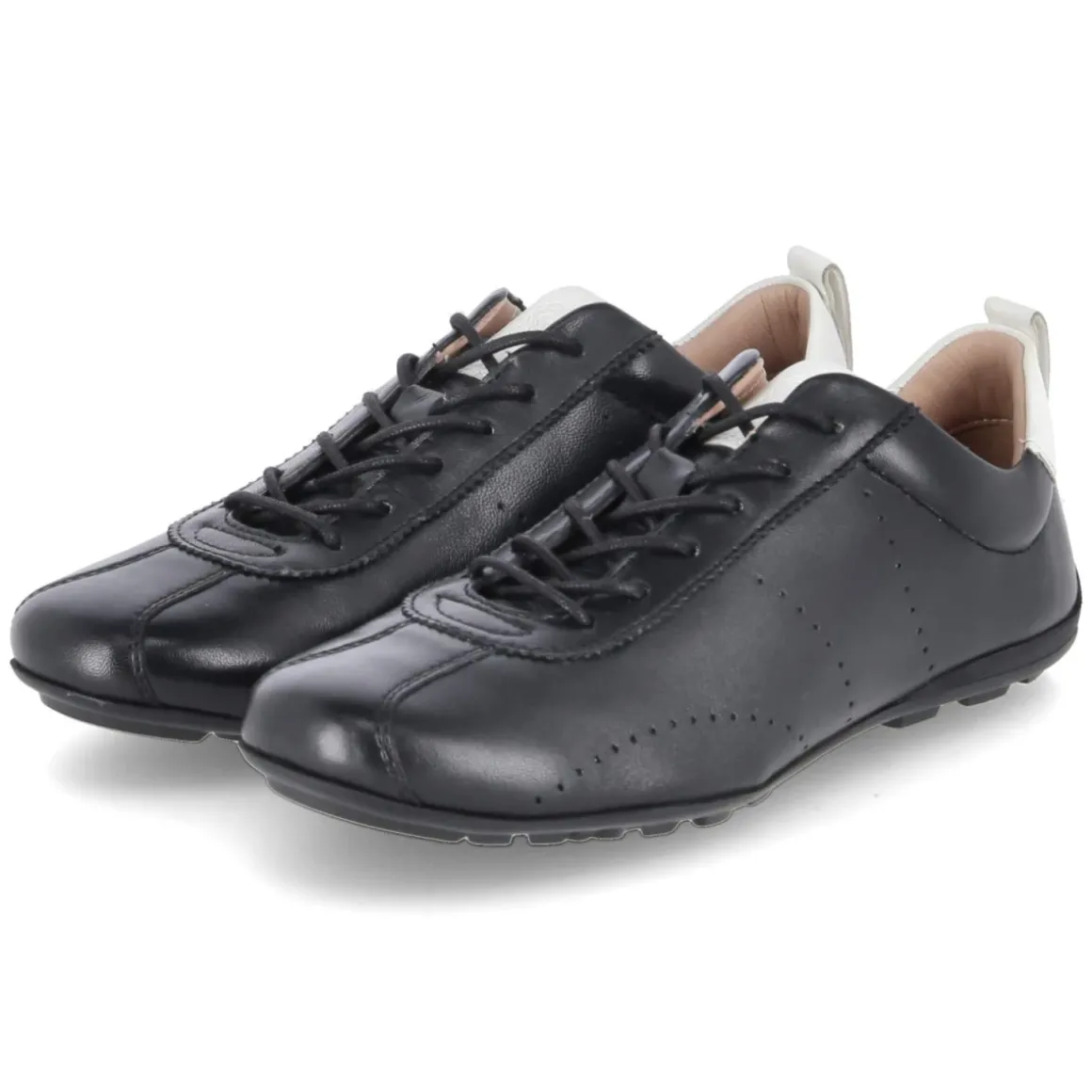 Der Low Sneaker von Salamander in Schwarz vereint zeitloses Design und zuverlässige Alltagstauglichkeit. Glattes Echtleder formt das schlanke Obermaterial, die abgerundete Schuhspitze sorgt für eine feminine Silhouette. Ein gepolsterter Einstieg und das weich unterlegte Lederfußbett verwöhnen bei jedem Schritt, während Zehen- und Fersenbereich verstärkt sind. Die dünne, sehr flexible und rutschhemmende Laufsohle greift sicher und unterstützt ein leichtfüßiges Abrollen. Dank Schnürung lässt sich der Sitz präzise anpassen, das Modell fällt normal aus und bleibt trotz robustem Material angenehm leicht. Zierende Seitenlochungen und dezentes Branding runden den Look ab – ein langlebiger Begleiter vom Office bis zum Wochenendspaziergang. Modetipp: Zur gekürzten Straight-Jeans und einem feinen Stricktop kombinieren; ein schwarzes Overshirt setzt den monochromen Look modern in Szene.