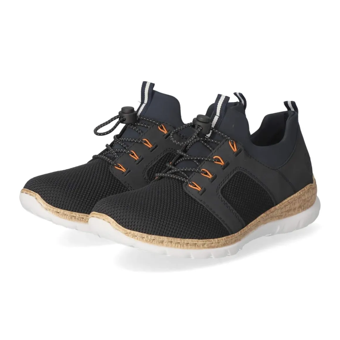 Der Low Sneaker von Rieker verbindet sportliche Leichtigkeit mit urbanem Stil. Der moderne Material-Mix aus Textil und Synthetik in frischem Blau überzeugt mit angenehmer Haptik und dezenter Struktur. Der Slip-On-Einstieg und der flexible Schnellverschluss erleichtern das Anziehen und passen die Weite im Handumdrehen an. Ein weich gepolstertes Fußbett und die flexible Laufsohle unterstützen ein komfortables Abrollen, während der verstärkte Fersenbereich stabilisiert. Die runde Schuhspitze ergänzt die feminine Silhouette, feine Markendetails setzen zurückhaltende Akzente. Mit Textildecksohle und normal ausfallender Passform wird Alltagskomfort mühelos möglich. Modetipp: Besonders stimmig wirkt das Modell zu Cropped-Jeans und Oversize-Blazer oder als frischer Kontrast zu einem luftigen Midikleid und einer Denimjacke.