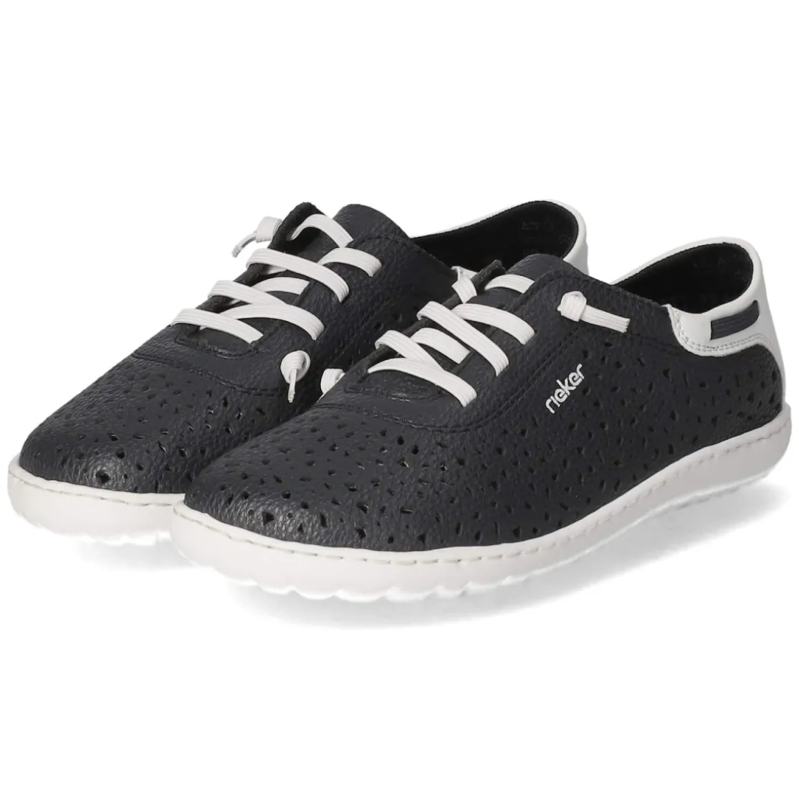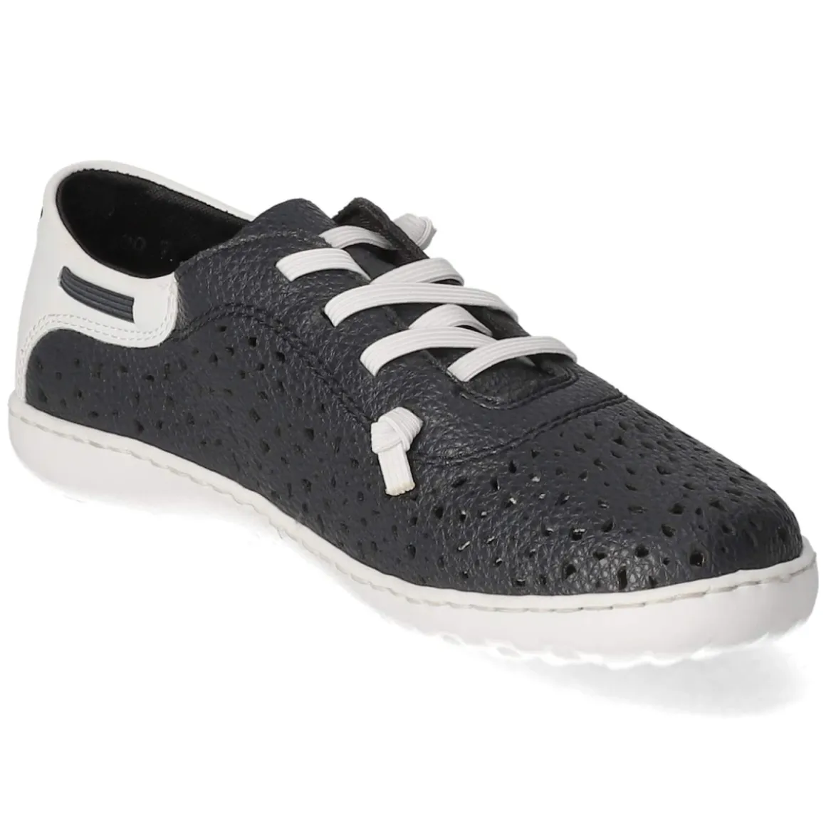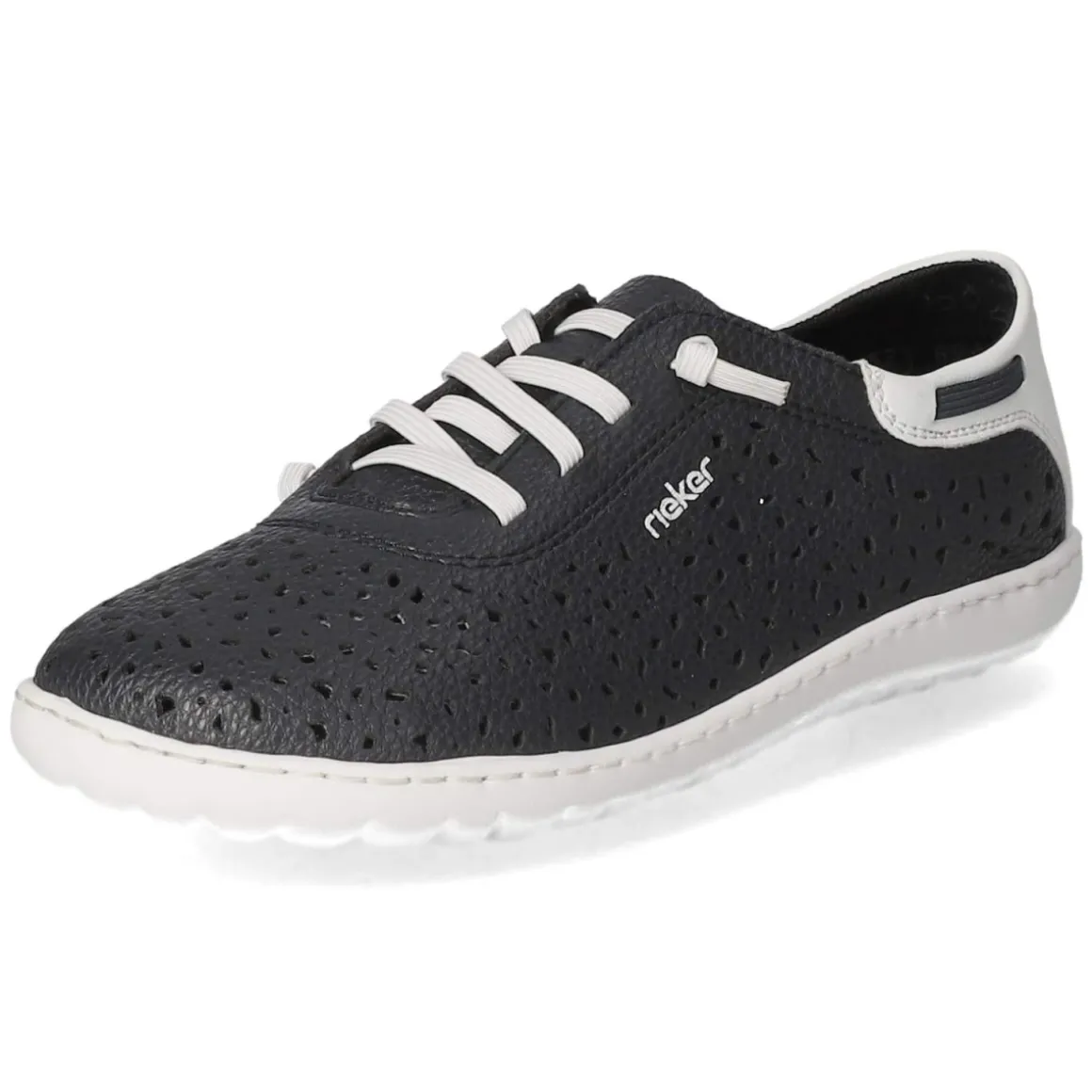 Der Low Sneaker von Rieker in Blau verbindet sportliche Lässigkeit mit einem frischen, urbanen Auftritt. Die modern designte Synthetik mit gelochter Oberfläche sorgt für angenehme Luftzirkulation, während die runde Schuhspitze und die verstärkte Ferse ein ausgewogenes Tragegefühl bieten. Dank Schnürsenkeln und zusätzlichem Elastikband gelingt der unkomplizierte Einstieg, die Passform lässt sich zugleich variabel anpassen. Innen verwöhnt ein angenehmes Textilfutter, die textile Decksohle und ein gepolstertes Fußbett federn jeden Schritt weich ab. Die flexible, rutschhemmende Laufsohle gibt Halt im Alltag, beim Bummel oder auf dem Weg ins Office. Der Größenhinweis fällt normal aus. Dezente Markendetails unterstreichen den cleanen Look. Modetipp: besonders stimmig zu hellen Mom-Jeans, einer gestreiften Bluse und Trenchcoat für einen maritimen City-Style.