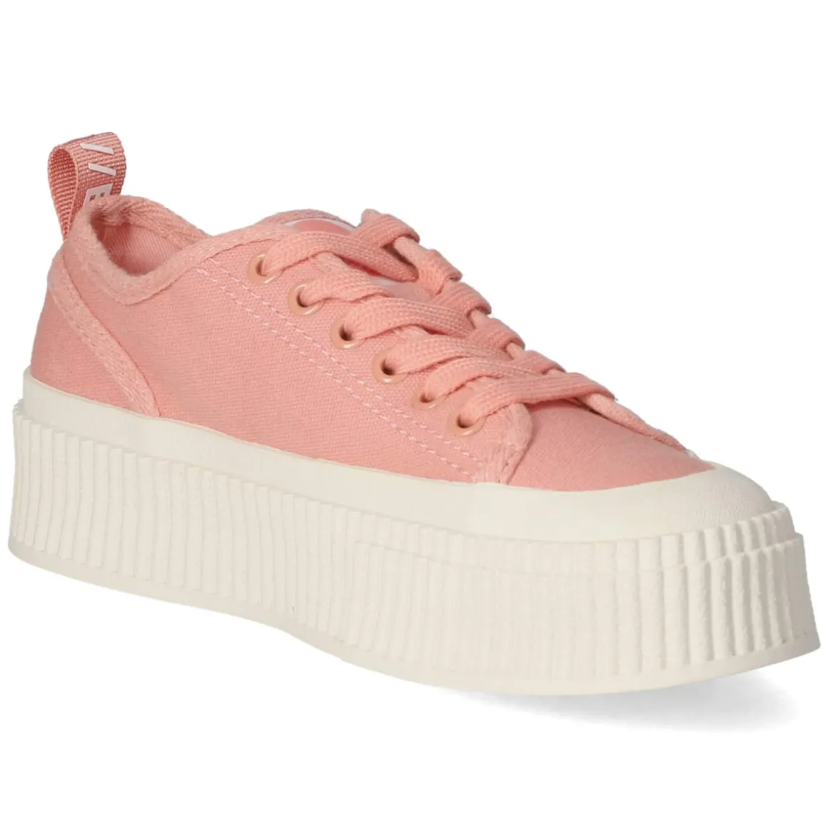 Der Low Sneaker MADISON von Buffalo verleiht Alltagslooks eine frische Note in Rosa. Das leichte Textilobermaterial sorgt für luftigen Tragekomfort, während die beste Memory-Foam-Fußbettung jeden Schritt weich abfedert. Dank Wechselfußbett bleibt der Komfort flexibel, die rutschfeste Plateausohle bietet sicheren Halt. Schnürung, runde Spitze und eine verstärkte Ferse mit Anziehlasche treffen auf einen hochgezogenen Schuhrahmen und feine Markendetails – so entsteht der sympathische, feminine Look. Die Passform fällt normal aus, die Decksohle aus Textil umschmeichelt den Fuß. Vegan gefertigt und ideal für lange Tage in der Stadt oder im Büro. Modetipp: Zu verkürzten Straight-Leg-Jeans, zartem Stricktop und einer leichten Trench-Jacke kommt das sanfte Rosa besonders schön zur Geltung.