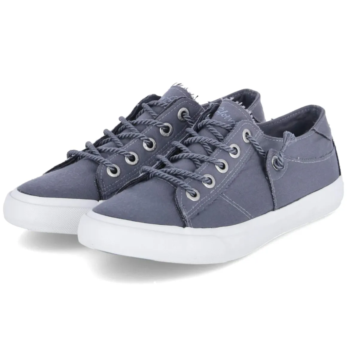 Blowfish Low Sneaker MARTINA bringt lässige Leichtigkeit in den Alltag. Das blaue Modell aus robustem Textil zeigt einen authentischen Used Look, der mit gelabelten Details und runder Kappe sportiv wirkt. Schnürsenkel und nutzbare Zierschnürung mit Kordel sorgen für variablen Halt, während der verstärkte Zehen- und Fersenbereich zusätzliche Stabilität gibt. Innen verwöhnt eine textile Decksohle mit gepolstertem Fußbett, das den Schritt angenehm dämpft. Die flexible, rutschhemmende Laufsohle bietet Grip auf urbanen Wegen. Der Schnitt fällt normal aus und passt bequem zu verschiedensten Fußformen. Dazu überzeugt die komplett vegane Materialwahl, ohne Kompromisse bei Stil und Komfort. Modetipp: Mit Cropped-Jeans, lockerem Strick und einer leichten Utility-Jacke entsteht ein entspanntes City-Outfit, das die blaue Farbe des Sneakers elegant aufgreift.
