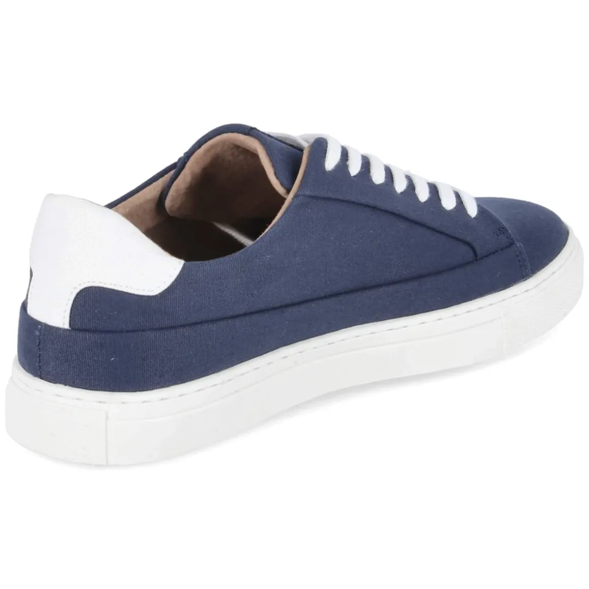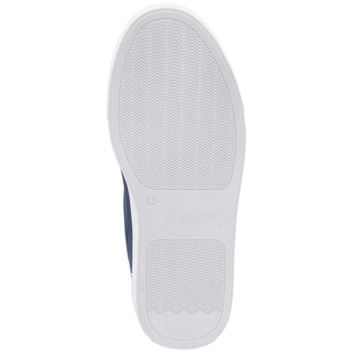 Der Low Sneaker von Kaerlek verbindet sportliche Lässigkeit mit alltagstauglicher Qualität. Das robuste Canvas-Obermaterial sorgt für Formstabilität und Atmungsaktivität, während ein hautfreundliches Lederfutter zusammen mit der ledernen Decksohle ein angenehm trockenes Trageklima fördert. Ein gepolstertes, herausnehmbares Fußbett bietet Komfort und die Möglichkeit, eigene Einlagen zu nutzen. Der verstärkte Seiten- und Fersenbereich erhöht die Haltbarkeit, die flexible Laufsohle mit Bumpern schützt und gibt Grip im urbanen Alltag. Mit runder Schuhspitze, klassischer Schnürung und dezentem Branding zeigt das blaue Modell vielseitigen Stil und fällt größengetreu aus. Modetipp: Zu Indigo-Jeans, weißem T-Shirt und einem leichten Harrington-Jacket entsteht ein cleaner City-Look, der den Sneaker in den Fokus rückt.
