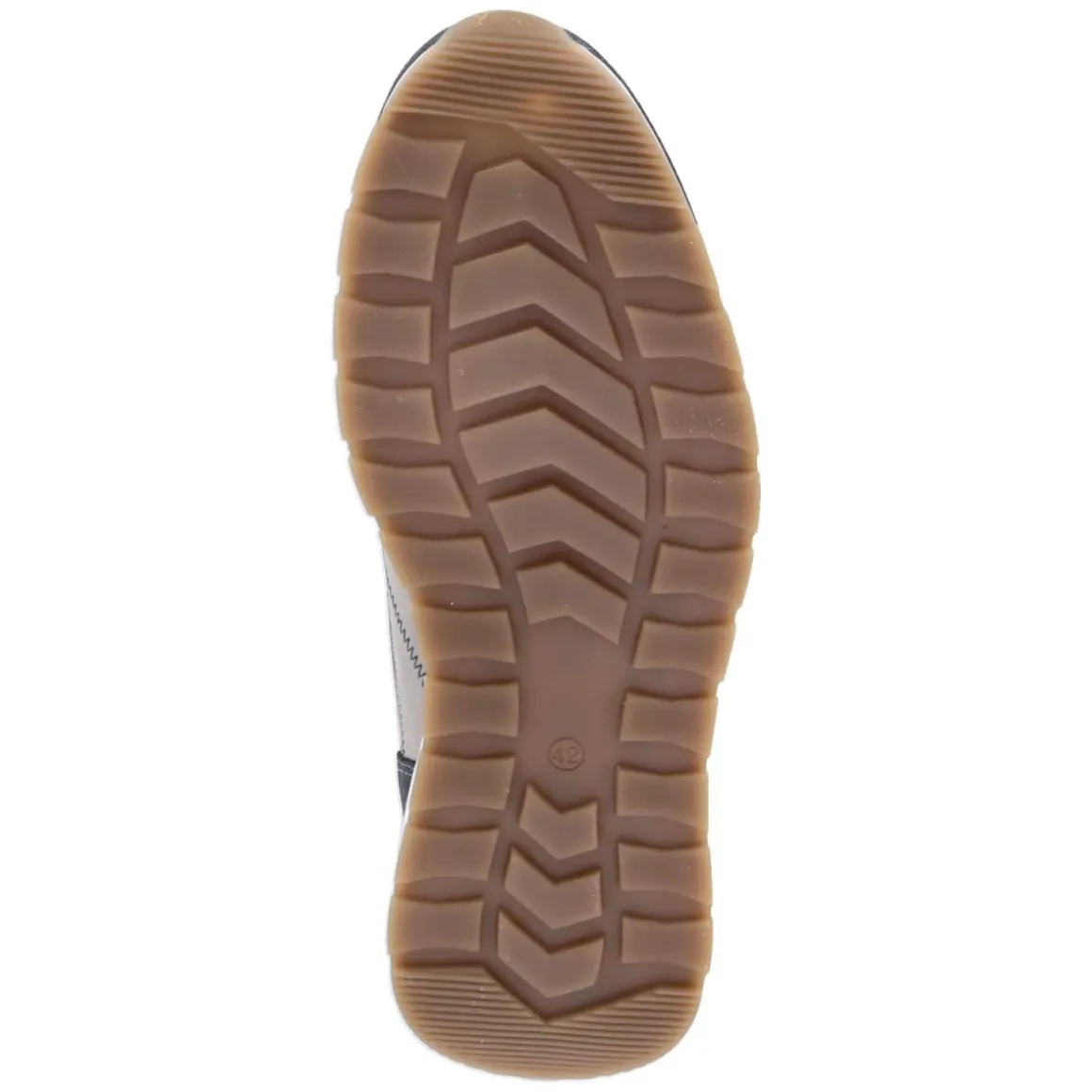 Der Low Sneaker von Bullboxer verbindet urbanes Design mit zuverlässiger Funktion. Das Obermaterial aus Leder und Textil zeigt einen robusten Material-Mix, der dank dunkelblauer und grauer Elemente lebendige Tiefe erhält. Eine gelochte Zehenpartie sorgt für Luftaustausch, die markanten, seitlichen Ziernähte und das Branding setzen charakterstarke Akzente. Rundum Komfort liefern gepolsterter Einstieg und ein weich gepolstertes, herausnehmbares Fußbett, das den Wechsel von Einlagen erleichtert. Zehen- und Fersenbereich sind zusätzlich verstärkt, während die flexible, rutschhemmende Laufsohle Trittsicherheit im Alltag bietet. Der Sneaker fällt größengetreu aus und überzeugt durch vielfältige Kombinationsmöglichkeiten von Freizeit bis Smart Casual. Modetipp: Besonders stimmig zu gekrempelten Chinos und einem Strickshirt; für einen sportlichen Twist mit einer leichten Bomberjacke ergänzen.