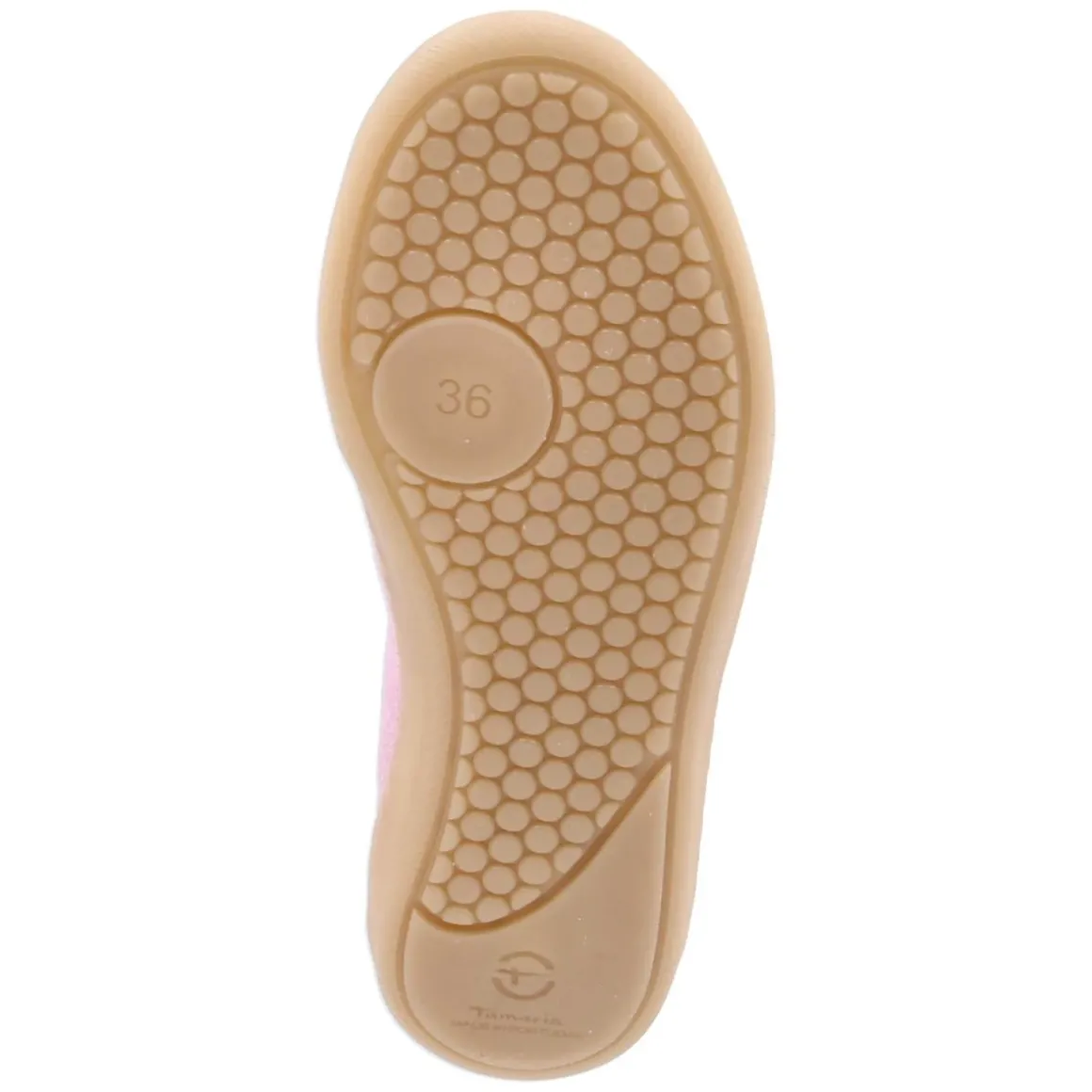 Der Low Sneaker von Tamaris verbindet eine trendige Retro-Optik mit durchdachtem Komfort. Das Obermaterial aus Leder und Synthetik bildet einen robusten Material-Mix, während die runde Schuhspitze und der gepolsterte Einstieg für ein angenehmes Tragegefühl sorgen. Ein geringes Gewicht macht den Auftritt besonders leicht, das komfortable Wechselfußbett mit textiler Decksohle lässt sich unkompliziert austauschen. Der schnürbare Verschluss bietet Halt, zwei Paar Schnürsenkel in Rosa und Gelb eröffnen variable Looks. Gelbe Elemente und das Seitenlogo setzen frische Akzente, verstärkte Zonen an Ferse und Zehen erhöhen die Langlebigkeit. Die Passform fällt normal aus und macht den Sneaker zum unkomplizierten Allrounder für Damen. Modetipp: Mit weitem Mom-Jeans-Schnitt und einem kurz geschnittenen Cardigan entsteht ein authentischer 90s-Style, der die pinke Farbe effektvoll in Szene setzt.