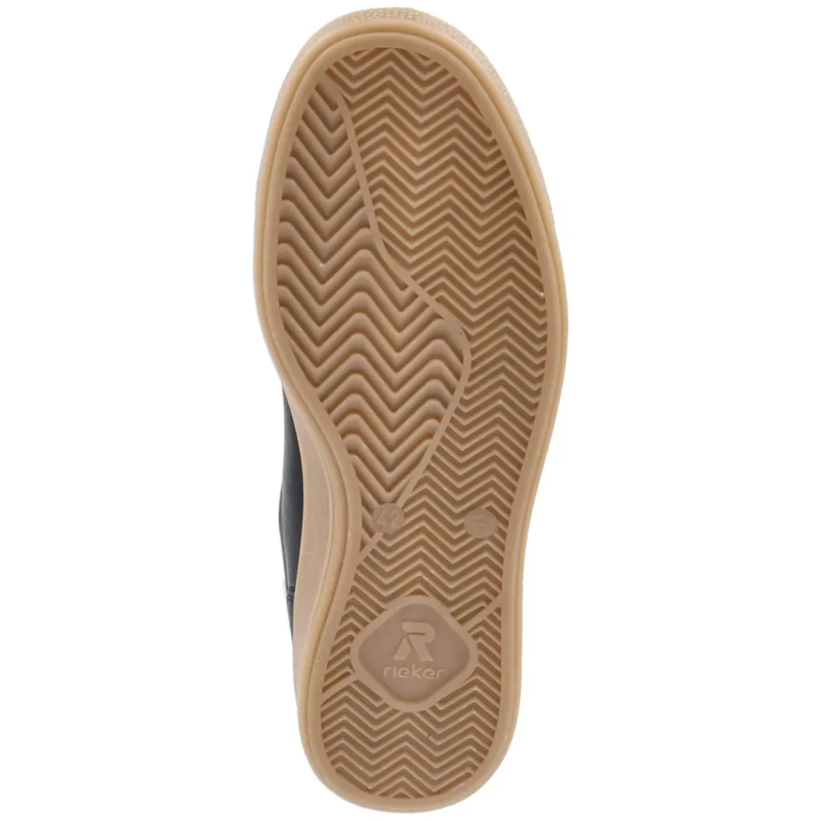 Dieser Rieker Low Sneaker verbindet klare Linien mit funktionaler Ausstattung und überzeugt in zeitlosem Schwarz mit feinen weißen Akzenten. Glattes Echtleder verleiht dem Obermaterial eine wertige Haptik, während die runde Schuhspitze und die klassische Schnürung eine sportive, vielseitige Silhouette formen. Ein komfortables Wechselfußbett auf textiler Decksohle sorgt für angenehmes Fußklima und ermöglicht eine individuelle Anpassung, die auch an langen Tagen Tragefreude bringt. Der Einstieg ist leicht gepolstert, Zehen- und Fersenbereich sind dezent verstärkt, was Halt gibt, ohne aufzutragen. Die flexible Cupsohle bietet rutschhemmenden Grip im Alltag und macht jede Bewegung geschmeidig mit. Größenhinweis: fällt normal aus. Modetipp: Besonders stimmig zu schmalen Chinos oder dunklem Denim, ergänzt von einem cleanen Sweatshirt oder einer leichten Lederjacke für einen urbanen Look.