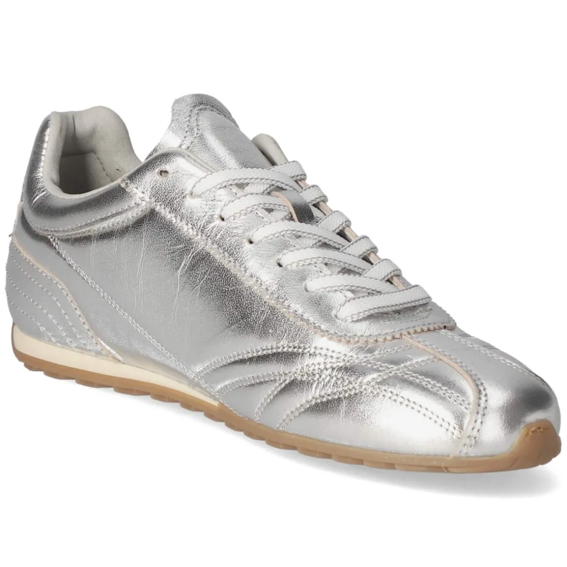 Der Bullboxer Low Sneaker setzt mit seiner elegant schimmernden Oberfläche in Silber moderne Akzente und bleibt zugleich zeitlos. Glattleder als Obermaterial, runde Schuhspitze und dynamische Ziernähte verleihen dem Design Struktur, während weißer Markenschriftzug sowie verstärkter Zehen- und Fersenbereich für einen sportlich-edlen Rahmen sorgen. Dank Schnürung lässt sich die Passform individuell regulieren; das komfortable Wechselfußbett und die textile Decksohle erhöhen den Tragekomfort im Alltag. Eine rutschfeste Profilsohle sorgt für verlässlichen Grip, der gepolsterte Einstieg schont den Knöchel. Der Sneaker fällt normal aus und begleitet vielseitig von City-Looks bis Casual Friday. Modetipp: Besonders modern wirkt das Modell zu cropped Straight-Jeans, einem weißen Shirt und einem grauen Oversize-Blazer, abgerundet mit silbernen Accessoires.