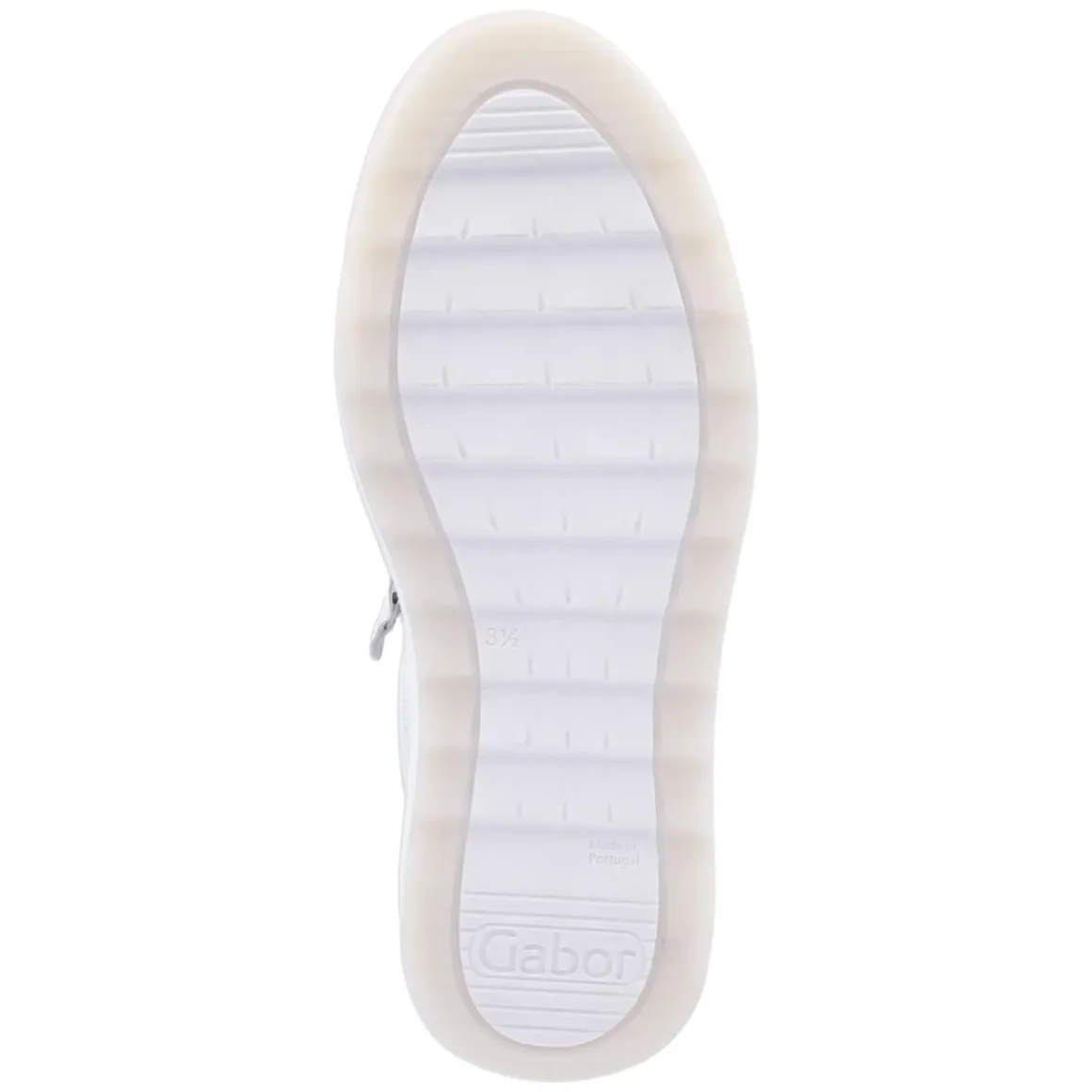 Der Gabor Low Sneaker in strahlendem Weiß verbindet urbanen Minimalismus mit durchdachtem Komfort. Langlebiges Echtleder in feinem Glattleder sorgt für eine wertige Optik, die runde Schuhspitze und der leicht gepolsterte Einstieg unterstützen entspanntes Gehen. Schnürung und zwei Reißverschlüsse ermöglichen variablen Halt und ein schnelles Hineinschlüpfen, der verstärkte Zehen- und Fersenbereich erhöht die Robustheit. Ein herausnehmbares, weich gepolstertes Wechselfußbett aus recycelten Materialien bietet angenehme Dämpfung und macht den Sneaker zugleich umweltfreundlich und nachhaltig. Die flexible, rutschhemmende Laufsohle gibt sicheren Grip im Alltag, dezentes Branding setzt einen feinen Akzent. Die Passform fällt normal aus, eine Decksohle aus Leder rundet das Tragegefühl ab. Modetipp: Zu cropped Denim und cleanem Trench wirkt das Weiß besonders modern.