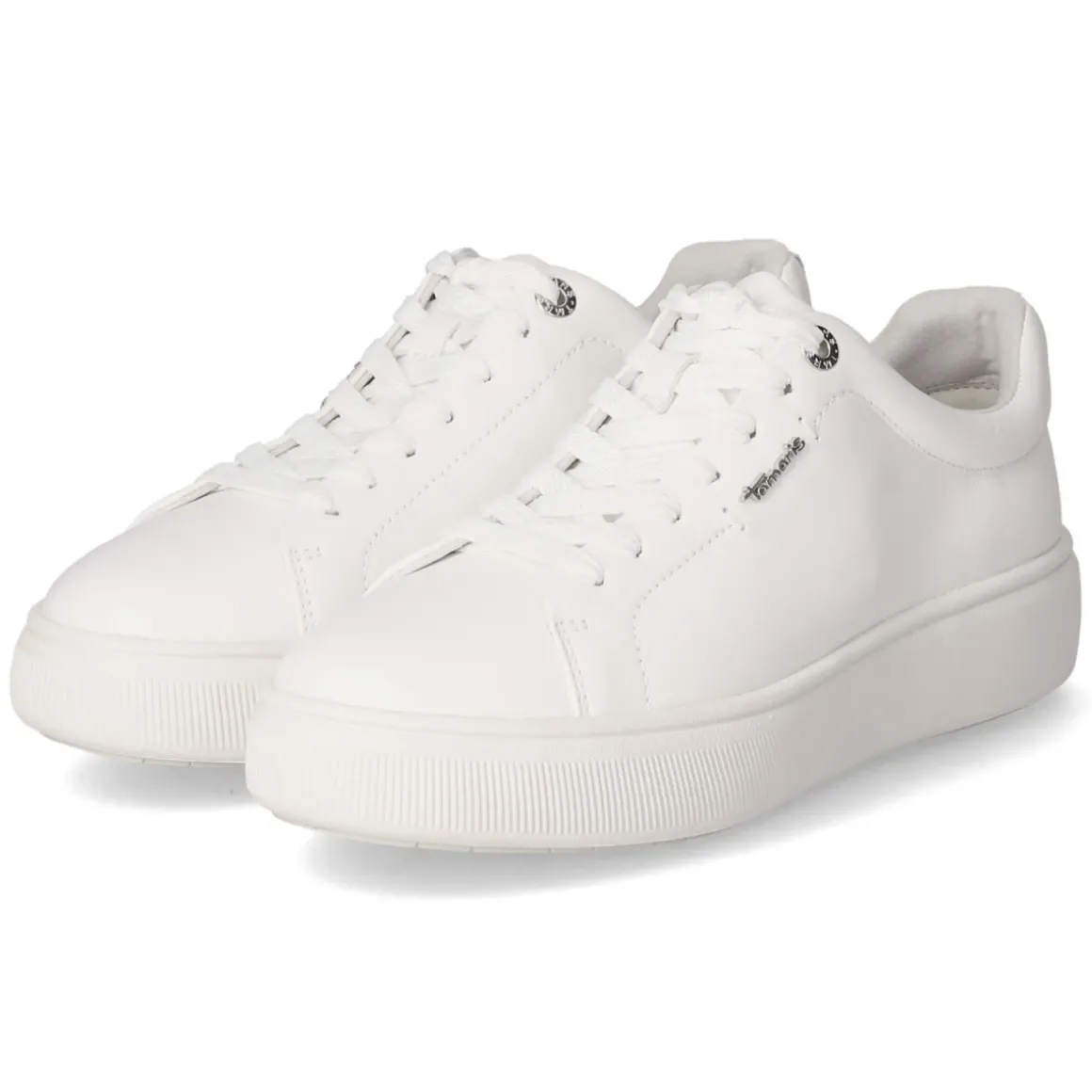 Der Low Sneaker von Tamaris aus langlebigem Glattleder präsentiert sich in klarem Weiß mit runder Spitze und sportlich-eleganter Linienführung. Das Modell fällt größengetreu aus und bietet dank Schnürung eine individuelle Anpassung, während eine verstärkte Ferse zusätzliche Stabilität verleiht. Ein gepolsterter Einstieg und leichtes Textilfutter sorgen für angenehm weiches Tragegefühl. Das komfortable, gepolsterte Wechselfußbett lässt sich bei Bedarf austauschen und unterstützt entspanntes Gehen über den ganzen Tag. Modische Ziernähte und dezente Markendetails unterstreichen die hochwertige Verarbeitung. Die flexible, rutschhemmende Laufsohle sichert zuverlässigen Halt auf verschiedenen Untergründen und macht den Sneaker zum vielseitigen Begleiter für Alltag und Freizeit. Modetipp: Im monochromen Styling zu weißer Cropped-Jeans und beigem Trench entsteht ein cleaner Look, alternativ mit gestreiftem Shirt und gekürztem Saum für lässige City-Optik.