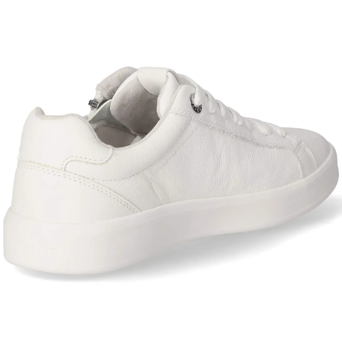 Dieser Low Sneaker von Tamaris in strahlendem Weiß verbindet sportliche Optik mit Komfort im Alltag. Der moderne Material-Mix aus Leder und Synthetik liegt weich am Fuß, die runde Spitze bietet Bewegungsfreiheit. Ein praktischer Doppelverschluss aus Schnürsenkeln und seitlichem Reißverschluss erleichtert das An- und Ausziehen, während die flexible, griffige Laufsohle sicheren Halt gibt. Für langanhaltendes Wohlgefühl sorgt das gepolsterte, herausnehmbare Wechselfußbett mit textiler Decksohle. Silberne Akzente, eine verstärkte Ferse und ein dezenter Markenakzent setzen stilvolle Highlights. Die Passform fällt normal aus und begleitet mühelos durch den Tag – von Erledigungen bis zum City-Bummel. Modetipp: Mit weißer Wide-Leg-Jeans, einem cleanen Stricktop und zartem Silberschmuck entsteht ein monochromer Look, der die Metallic-Details elegant aufgreift.