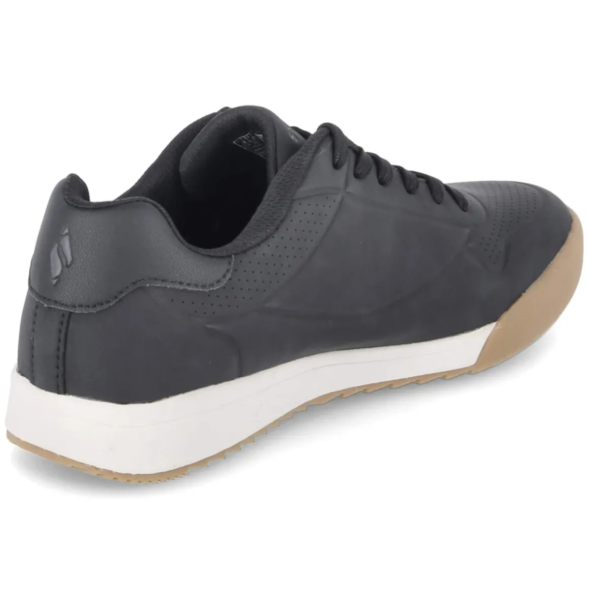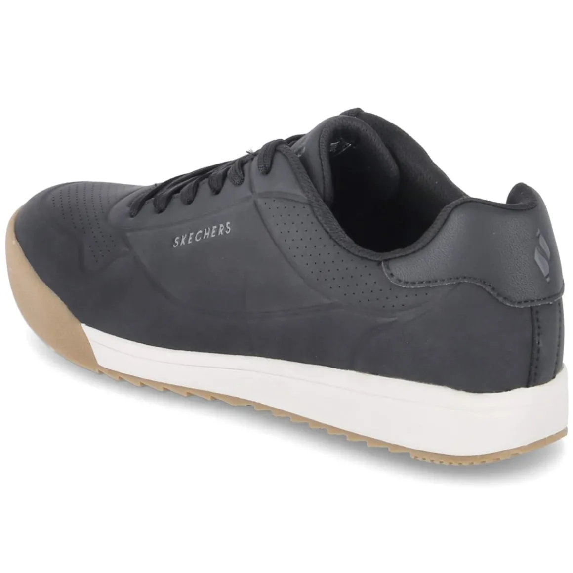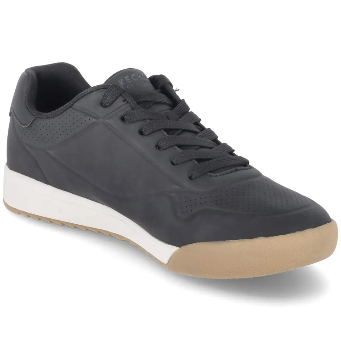 Der Low Sneaker ZINGER 2.0 von Skechers vereint klare Linien mit durchdachter Funktion. Das Obermaterial aus Synthetik zeigt eine pflegeleichte Oberfläche, die ihren satten Schwarzton lange bewahrt, während dynamische Prägungen und dezente Markendetails die moderne Optik akzentuieren. Innen sorgt eine textile Decksohle zusammen mit der besten Memory-Foam-Fußbettung für weiche Dämpfung und komfortable Anpassung an den Fuß. Der gepolsterte Einstieg schont den Knöchel, die rund geformte Schuhspitze bietet Bewegungsfreiheit. Ein verstärkter Zehen- und Fersenbereich erhöht die Strapazierfähigkeit im Alltag. Die flexible, rutschfeste Cupsohle gibt Halt auf unterschiedlichen Untergründen. Mit normal ausfallender Passform und klassischem Schnürverschluss lässt sich der Schuh mühelos integrieren – vom Büro bis in die Freizeit. Modetipp: Für einen smart-sportiven Look mit dunkler Slim-Jeans, weißem T-Shirt und einer leichten Bomberjacke kombinieren; eine clean designte Uhr rundet das Ensemble ab.