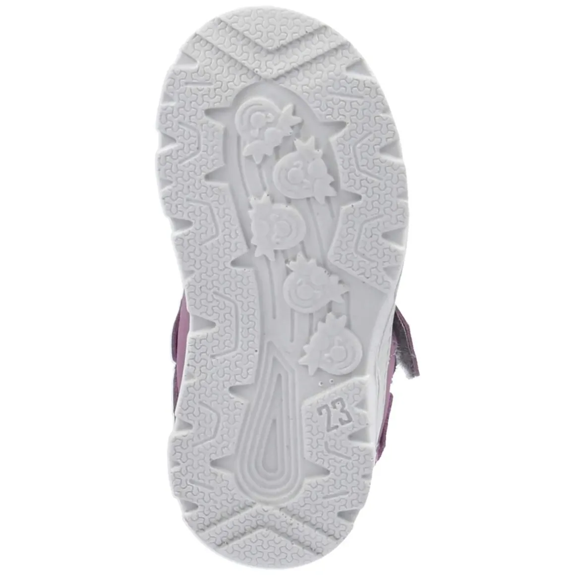 Die Miniletten GERY von Pepino bringen lebendige Farbe in den Alltag kleiner Entdecker. Das lila Obermaterial aus Synthetik zeigt sich pflegeleicht und sogar maschinenwaschbar, während weiches Lining und die hautfreundliche Lederdecksohle sanften Komfort bieten. Ein Elastikband in Schnüroptik kombiniert mit einem Klettverschlussriemen erleichtert das An- und Ausziehen und sorgt für verlässlichen Halt. Die runde Schuhspitze und die graue Zehenkappe schützen zuverlässig, die flexible Laufsohle unterstützt ein natürliches Abrollen. Die Passform fällt normal aus und macht die Größenauswahl unkompliziert. Ob Spielplatz, Kita oder Stadtspaziergang – dieser Kinder-Schuh ist für vieles bereit und bleibt dank pflegeleichter Oberfläche lange schön. Modetipp: Lila wirkt besonders stimmig zu grauen Basics, Denimshorts oder einem gemusterten Sommerkleid in Pastelltönen.