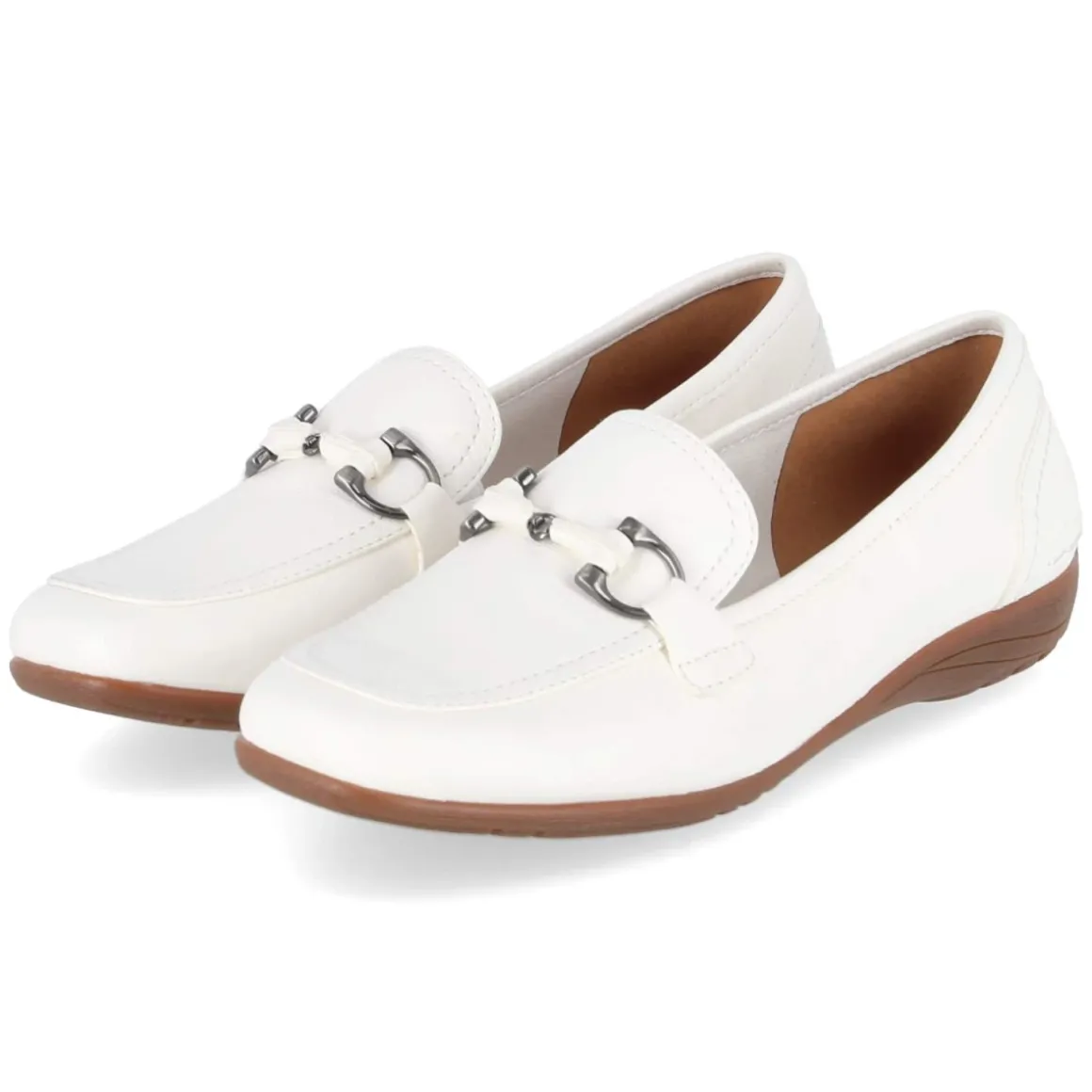 Mokassins FENJA 34 von Josef Seibel verbinden zeitlose Eleganz mit durchdachtem Komfort. Das hochwertige Glattleder in klassischem Weiß zeigt sich langlebig und formstabil, während die karreeförmige Spitze dem Design eine moderne Note verleiht. Ein gepolstertes Fußbett und die Lederdecksohle sorgen für ein angenehm weiches Tragegefühl, das relaxt-leichte Gesamtgewicht macht den Schuh zum idealen Alltagsbegleiter. Ohne Verschluss schmiegt sich der Mokassin dank kleinem Elastikkeil an der Zunge unkompliziert an den Fuß, eine verstärkte Ferse gibt zusätzliche Stabilität. Der Zierriemen mit Metallelementen setzt einen dezenten Akzent, die sehr flexible, rutschhemmende Laufsohle bietet zuverlässigen Grip. Größenhinweis: fällt normal aus. Modetipp: Mit weiten Marlenehosen und einer feinen Strickjacke entsteht ein souveräner City-Look, zu dem eine strukturierte Ledertasche perfekt harmoniert.