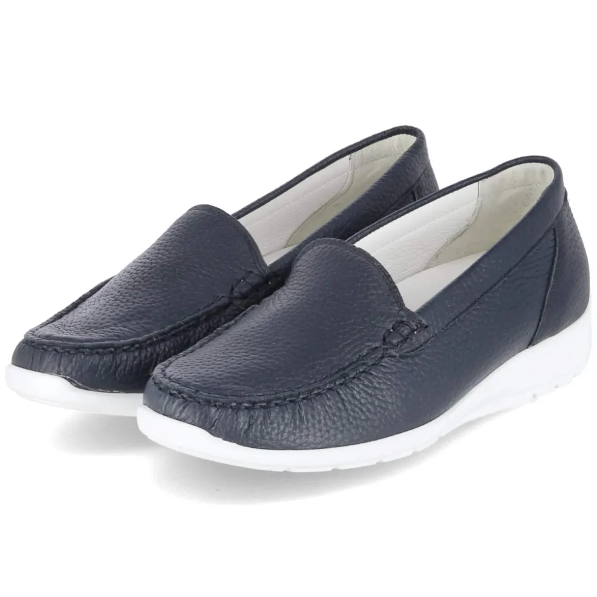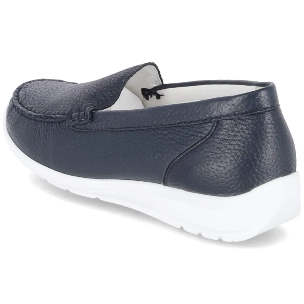 Mokassins HINATA von Waldläufer zeigen in klassischem Blau, wie bequem Eleganz sein kann. Langlebiges Glattleder trifft auf hautfreundliches Lederfutter und eine runde Schuhspitze, die dem Fuß natürlich Raum gibt. Der verlässliche Halt entsteht durch den verstärkten Fersenbereich, während die flexible, rutschfeste Laufsohle mit leichtem Profil für entspanntes Gehen auf verschiedensten Untergründen sorgt. Innen überzeugt eine gepolsterte, herausnehmbare Lederdecksohle; das Wechselfußbett ermöglicht bei Bedarf den Einsatz eigener Einlagen. Ohne Verschluss gestaltet, gelingt das Hineinschlüpfen mühelos. Der Leisten fällt normal aus und erleichtert die Größenauswahl. In Kombination mit Denim, Chino oder leichten Stoffhosen ergeben sich vielfältige Styling-Optionen. Modetipp: Zu Cropped-Jeans und gestreiftem Shirt entsteht ein frischer City-Look, ein Ton-in-Ton-Outfit in Blau wirkt besonders harmonisch.