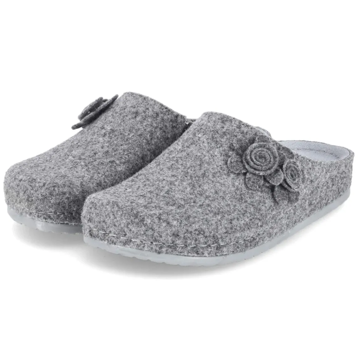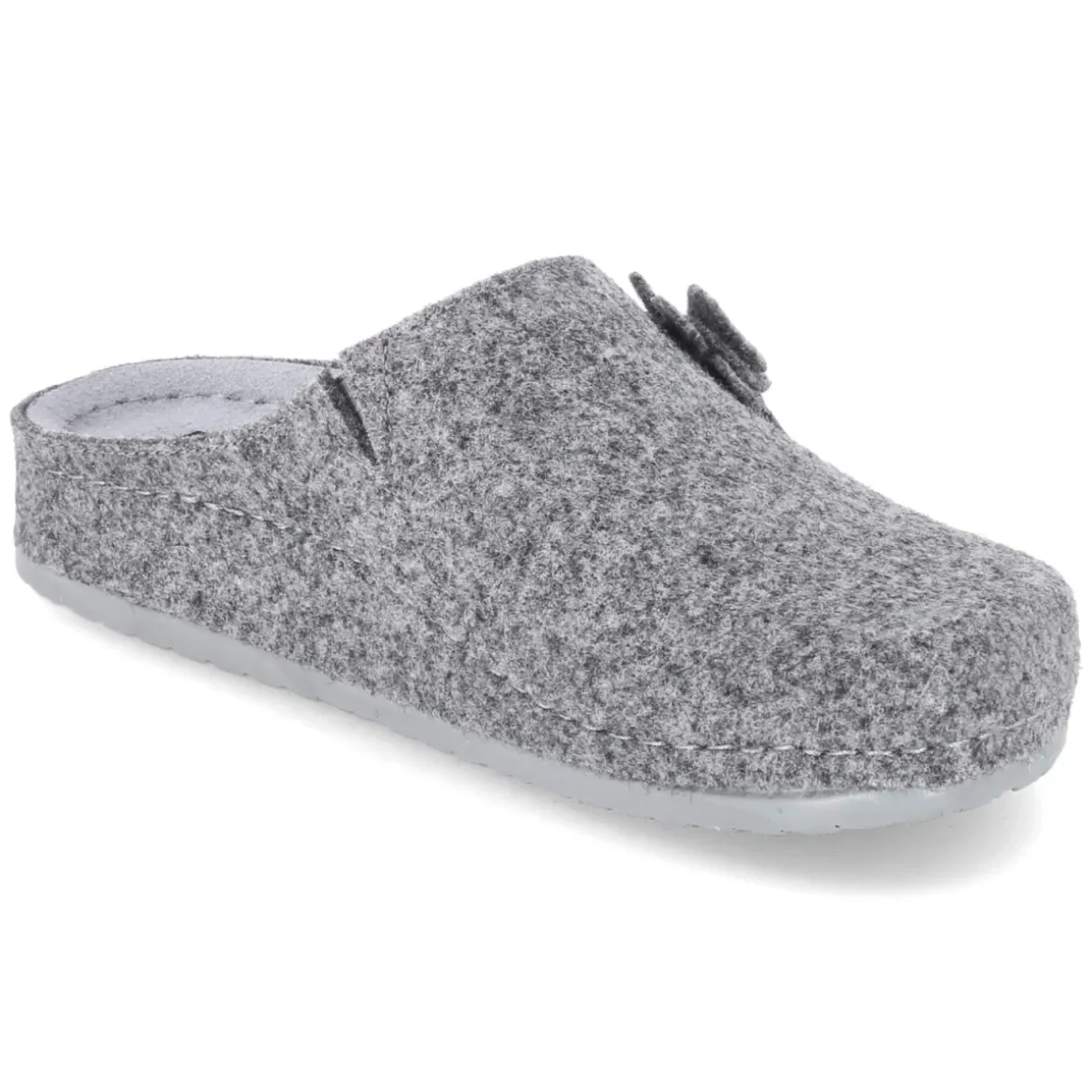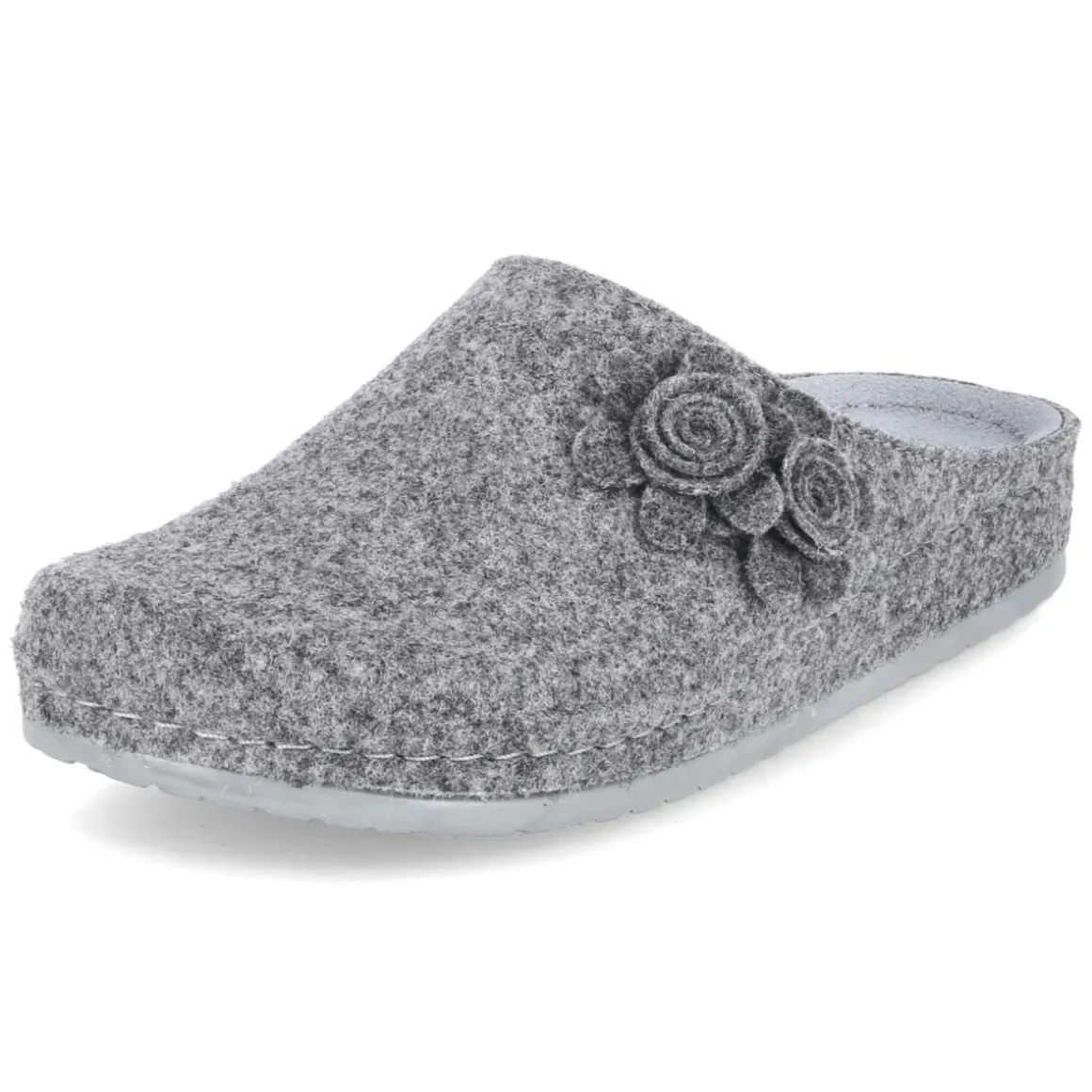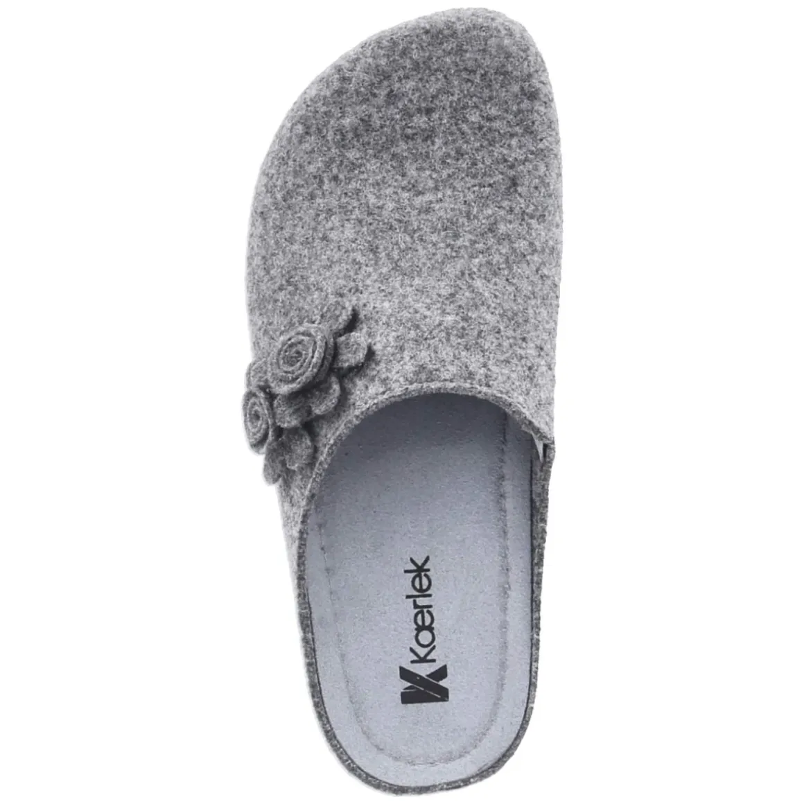 Kaerlek präsentiert mit den Pantoffeln NANA einen zeitlosen Hausschuh für Damen, der Komfort und dezente Eleganz vereint. Das melierte Obermaterial aus robust anmutendem Filz wirkt formstabil und anschmiegsam, während die klassische, runde Spitze die schlanke Silhouette unterstreicht. Eine seitliche, feine Rosenapplikation setzt einen femininen Akzent, der nie aufdringlich wirkt. Dank Elastikeinsatz am Spann gelingt das Hineinschlüpfen mühelos, die Passform bleibt angenehm sicher. Die vorgeformte, weich gepolsterte Lederdecksohle unterstützt den Fuß den ganzen Tag, die flexible Laufsohle sorgt für leises Abrollen auf glatten Böden. Das Modell fällt normal aus und überzeugt mit langlebiger Qualität für jeden Tag. Modetipp: Zu Strickhose und lockerem Cardigan in Graunuancen oder Rosétönen kombinieren – Ton-in-Ton entsteht ein harmonischer, gepflegter Lounge-Look.